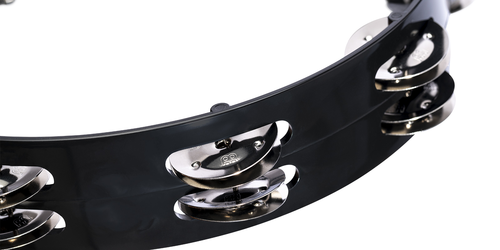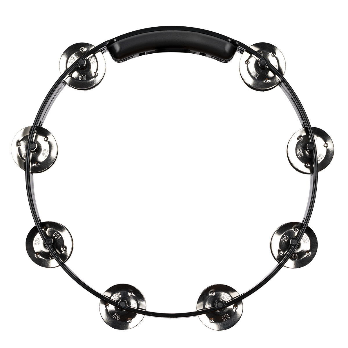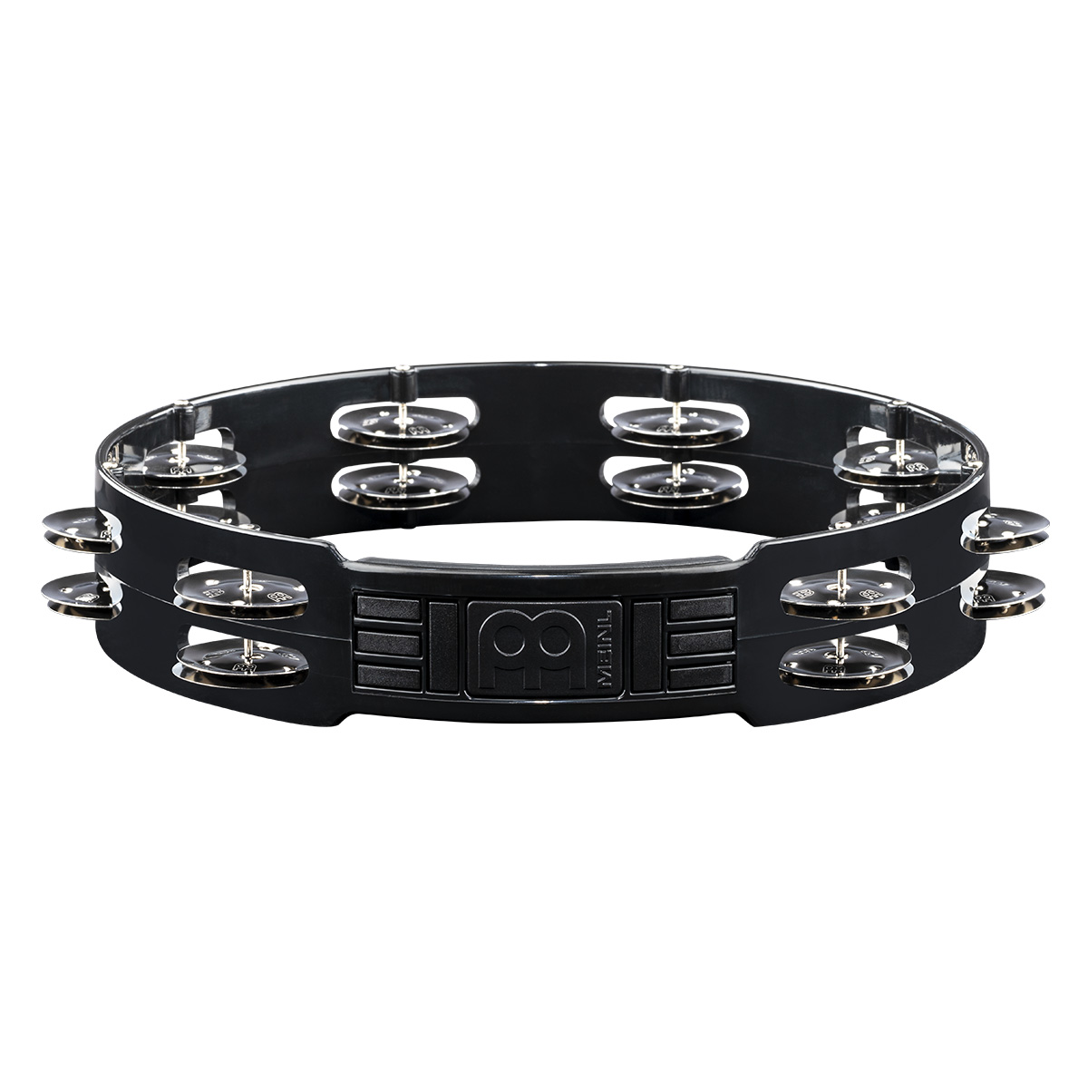 Pandero serie Headliner, 2 hileras de crótalos de acero inoxidable, agarre extra ancho, brillo y sonido cortante, marco durable de ABS, 2 hileras de crótalos de acero inoxidable, diámetro: 10” pulgadas, color negro.