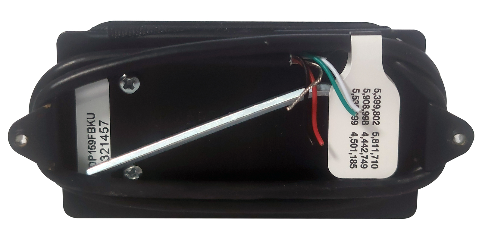 Pastilla humbucker Evolution para puente, alambrado: 4 conductores, imán: cerámica, espaciado: F-Spaced, resistencia: 13.84 kilo-ohms, funciona en casi todos los cuerpos sólidos y en la mayoría de los cuerpos semi-huecos, diseñadas para obtener el máximo impacto y potencia.