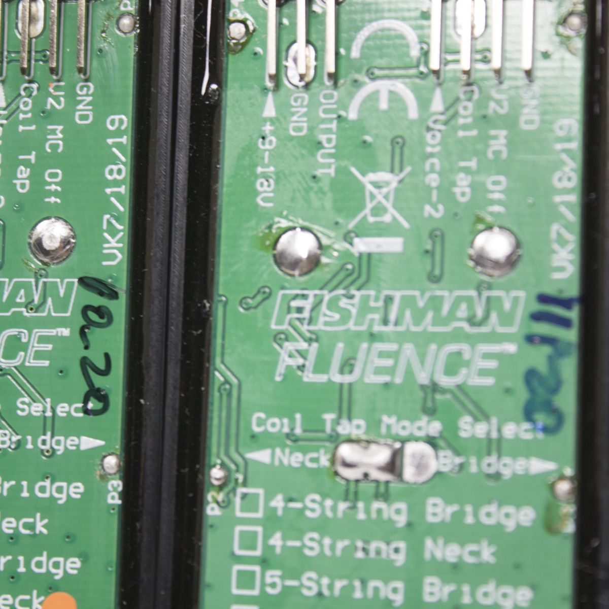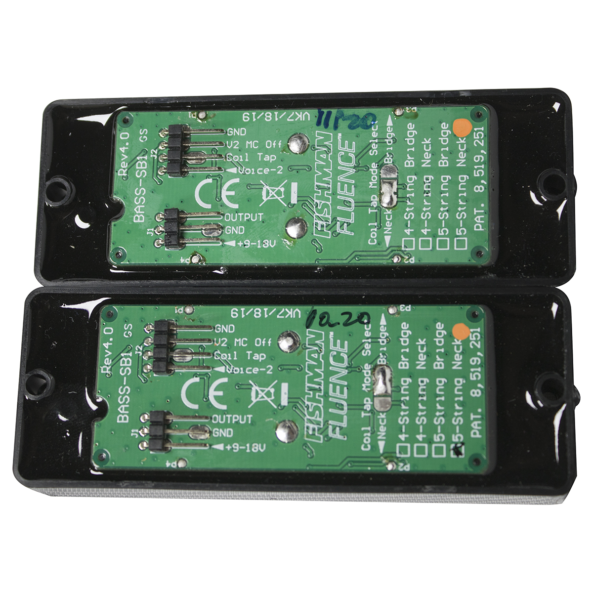 Set de pastillas 2 para bajo de 5 cuerdas, ecualizador de 2 bandas con agudos/graves independientes, perilla blend con fácil entrada y salida, perilla push-pull para división de volumen/coil mini switch de palanca de 3 vías para una fácil selección de voz, todos los components necesarios para logar el esquema de cableado de Fluence Bass, voz 1 (Pasivo): Clásico, gordo y redondo, voz 2 (Activo): Frecuencia completa, dinámica completa, voz 2 (Activo con contorno de medios): Funk, Hi-Fi scooped, modo Single Coil: Las mismas voces que arriba pero con la ventana de cuerdas Jazz Bass.