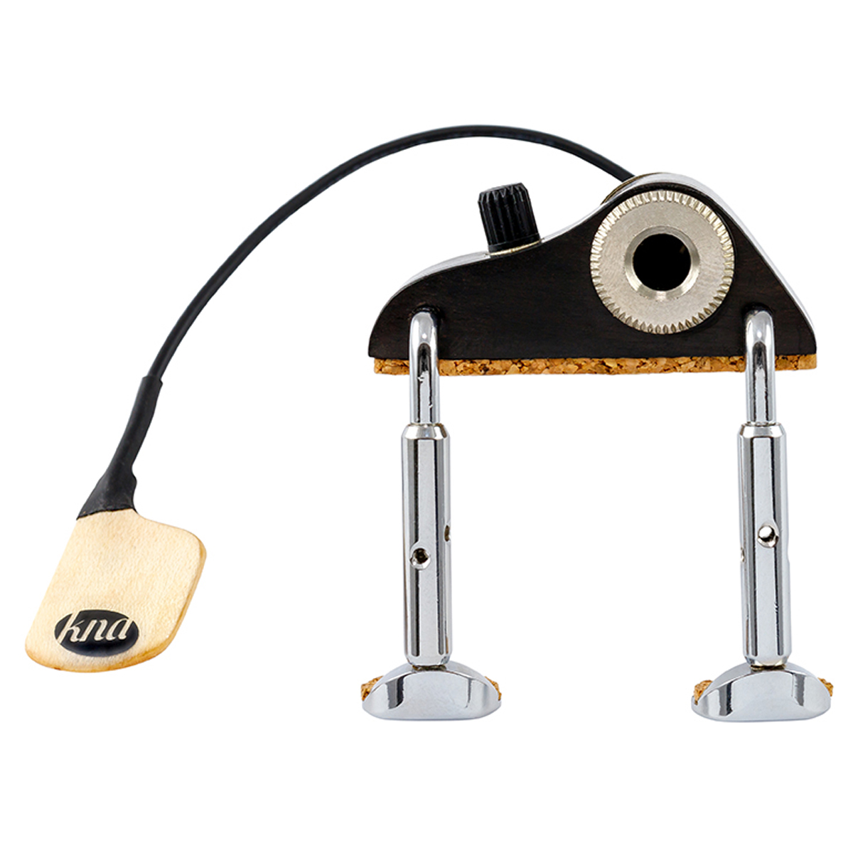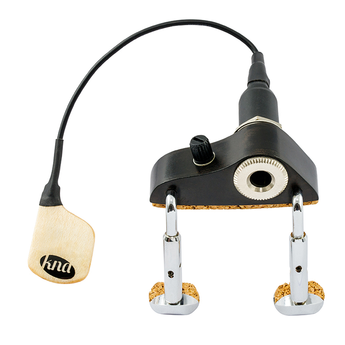 MP-2 es una pastilla piezoeléctrica portátil para mandolina, diseñada y fabricada a mano por KNA. De instalación segura y rápida, control de volumen integrado, los músicos pueden controlar su señal de salida en el escenario o en el estudio desde la perilla de volumen montada en la pastilla. Diseño de carcasa de madera y sensor, carcasa revestida de ébano elegante y con estilo. El sensor piezoeléctrico tiene una carcasa de madera liviana para lograr la máxima sensibilidad y transmisión tonal. MP-2 tiene un diseño pasivo que reproduce el sonido natural del instrumento sin necesidad de batería. Las abrazaderas ajustables tienen corcho protector en cada punto de contacto para evitar daños al acabado de su instrumento. Compatible con todo tipo de mandolinas de fondo plano. La pastilla está diseñada para encajar perfectamente en mandolinas de fondo plano con cuerpo A y F con puentes ajustables en la base y la parte superior.