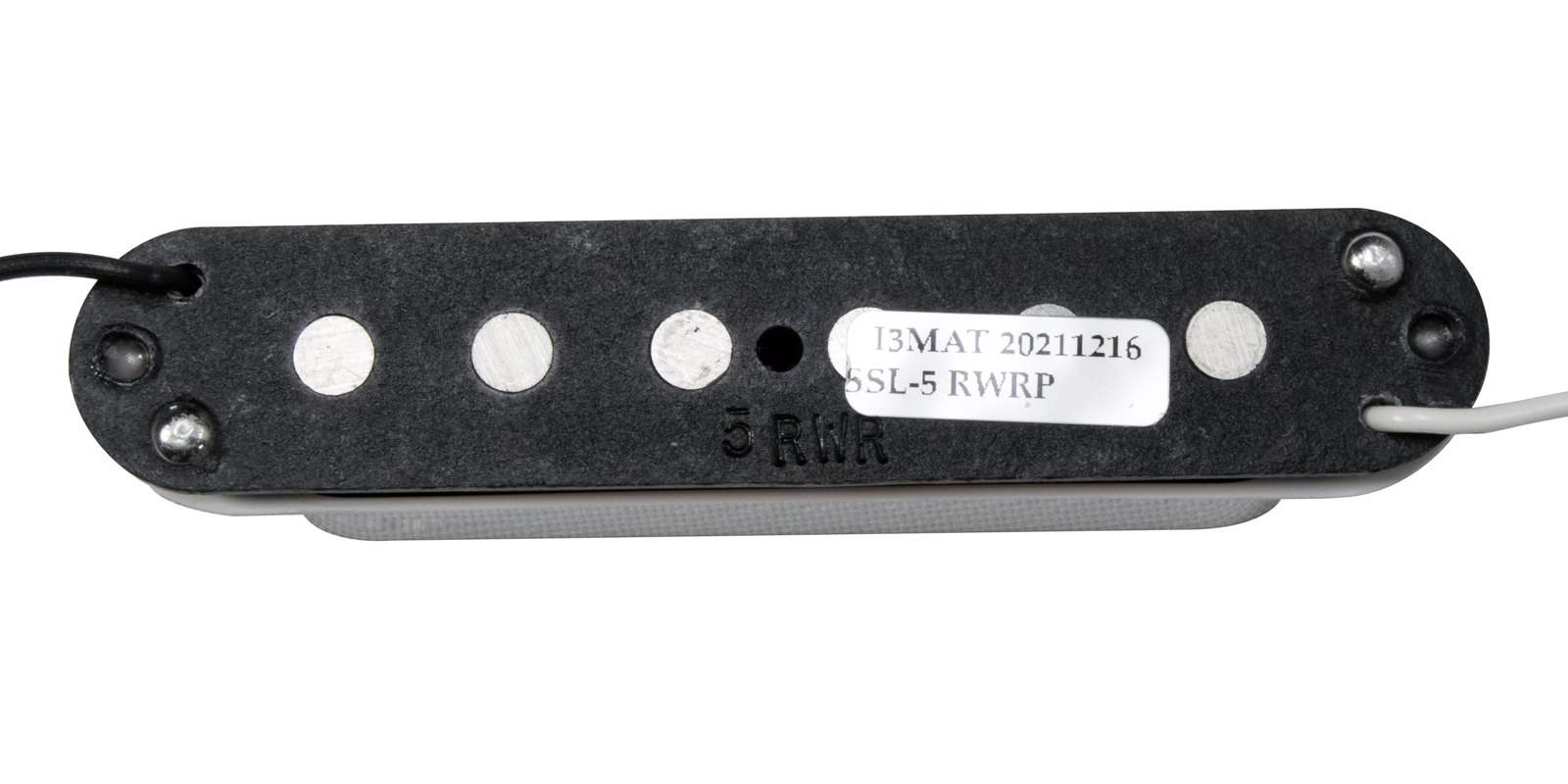 Pastilla single-coil para guitarra eléctrica, modelo Custom Staggered (David Gilmour), posición: central (RwRP), cableado: PVC Lead Wire, tipo: pasivo, imán: Alnico 5, espaciado estándar, resistencia: 13.3 kilo-ohms, la mejor pastilla overwound Stratocaster de salida media (SSL-5) esta es la single-coil en la posición central RWRP de David Gilmour Signature Fender Stratocaster.