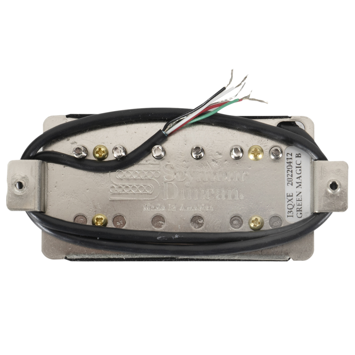 Pastilla humbucker pasiva para guitarra eléctrica de 6 cuerdas, modelo Green Magic, posición: puente, cableado: 4 cables blindado, imán: alnico 2, resistencia: 8.7 kilo-ohms, imán instalado al revés, claridad y gran expresividad, obtén los tonos auténticos de la era dorada del blues rock con un toque sobrenatural.