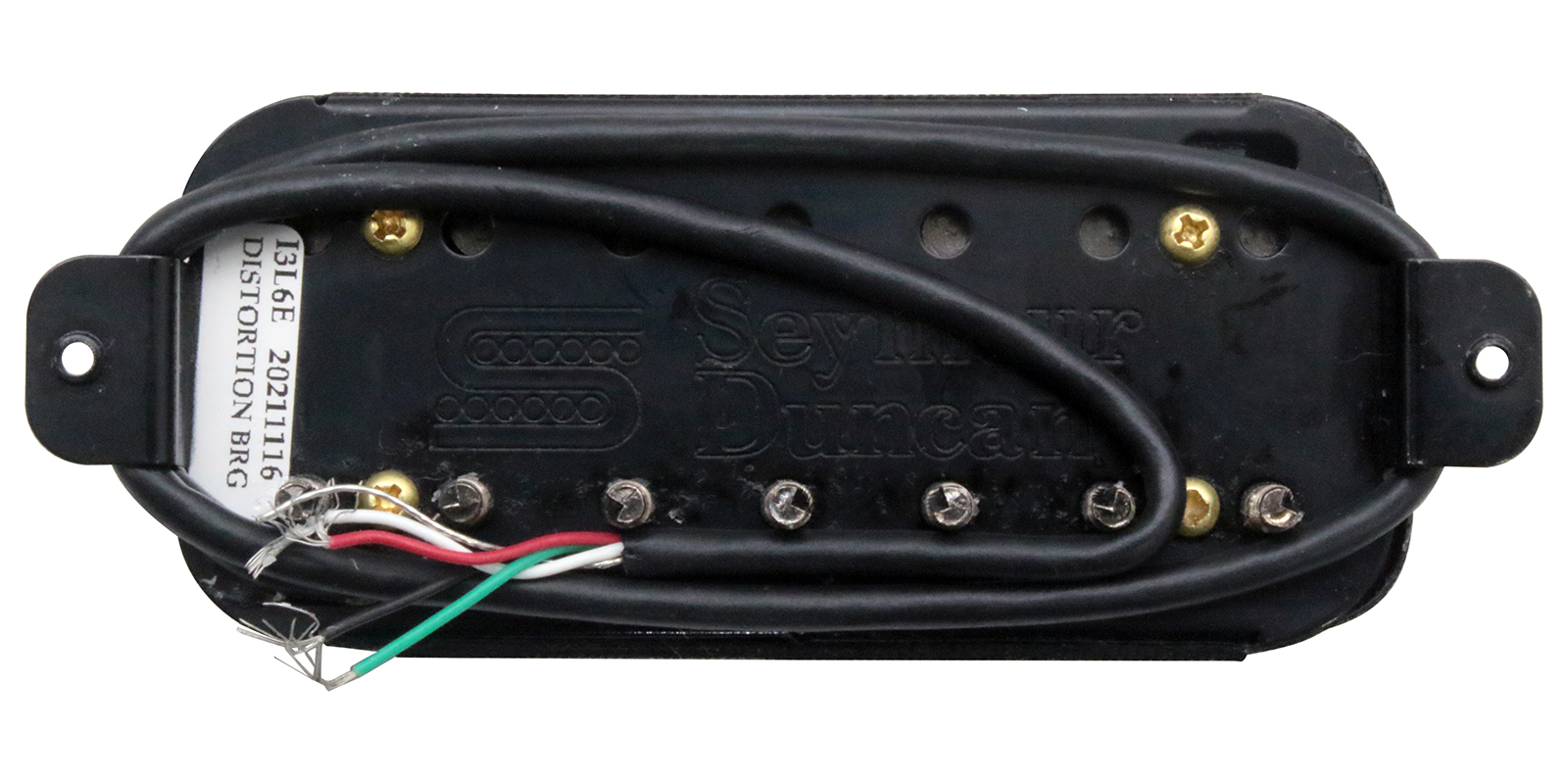 Pastilla humbucker para guitarra eléctrica de 7 cuerdas, modelo Distortion, posición: puente, cableado: 4 conductores, tipo: pasivo, imán: cerámica, espaciado estándar, resistencia: 19.5 kilo-ohms, bobinados hot-coil, graves ajustados y medios con un top-end abrazador, ideal para estilos de rock y metal.