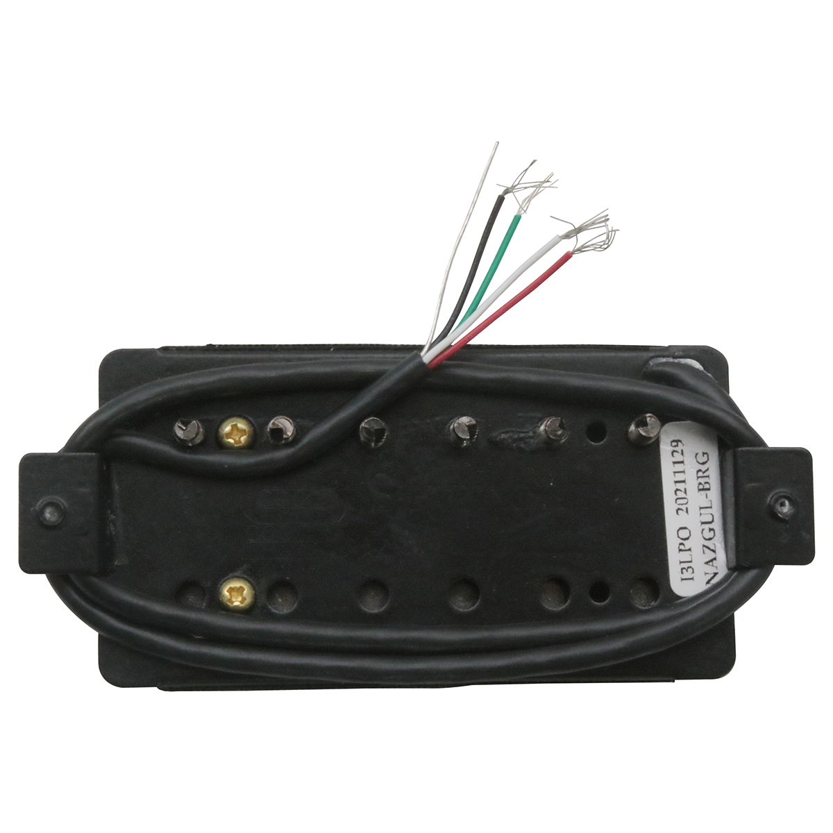 Pastilla humbucker para guitarra eléctrica de 6 cuerdas, modelo Nazgûl, posición: puente, cableado: 4 conductores, tipo: pasivo, imán: cerámica, espaciado estándar, color negro, resistencia: 13.6 kilo-ohms, forjada para sondear la más profunda de las afinaciones de metal, agudos abrasadores, medios chirriantes y graves ajustados que definen el sonido del metal moderno.