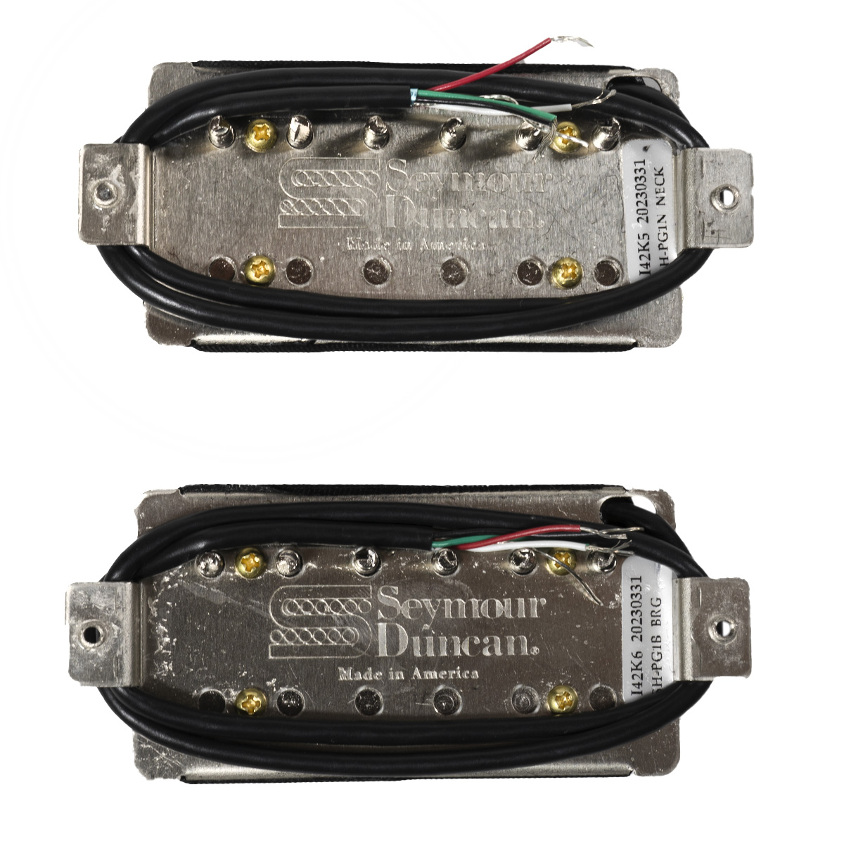 Nuestras pastillas humbucker Pearly Gates transforman cualquier guitarra de estilo Les Paul en un forajido de rock clásico. Es un PAF con una variación tonal única que proporciona más rango medio que los típicos humbuckers de esa época. El resultado es una pastilla de mástil que se abre paso con medios más fuertes a medida, pero aún tiene el ataque de agudos abierto y aireado del imán de barra alnico 2, las pastillas humbucker de salida vintage Pearly Gates utilizan un imán de barra de alnico 2, una placa inferior de níquel plateado, un cable conductor de 4 conductores para múltiples opciones de cableado y están encapsuladas en cera al vacío para un rendimiento sin chirridos. El puente Pearly Gates está disponible en espaciado humbucker estándar y Trembucker.