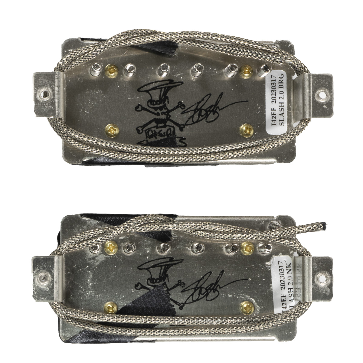 El juego de humbucker exclusivo de Slash, el conjunto Slash 2.0 se basa en sus pastillas APH-2 exclusivas, ahora con un viento más cálido que proporciona el equilibrio perfecto de volumen, impulso y compresión gracias a una pastilla Humbucker de posición en Mástil y Puente para guitarras de 6 cuerdas con imán de Alnico 2, DCR: Mástil 8.8k y Puente 9.38k y Cable de 1c blindaje trenzado, tipo Pasivo, color Crema/Negro y Sin Cubierta.