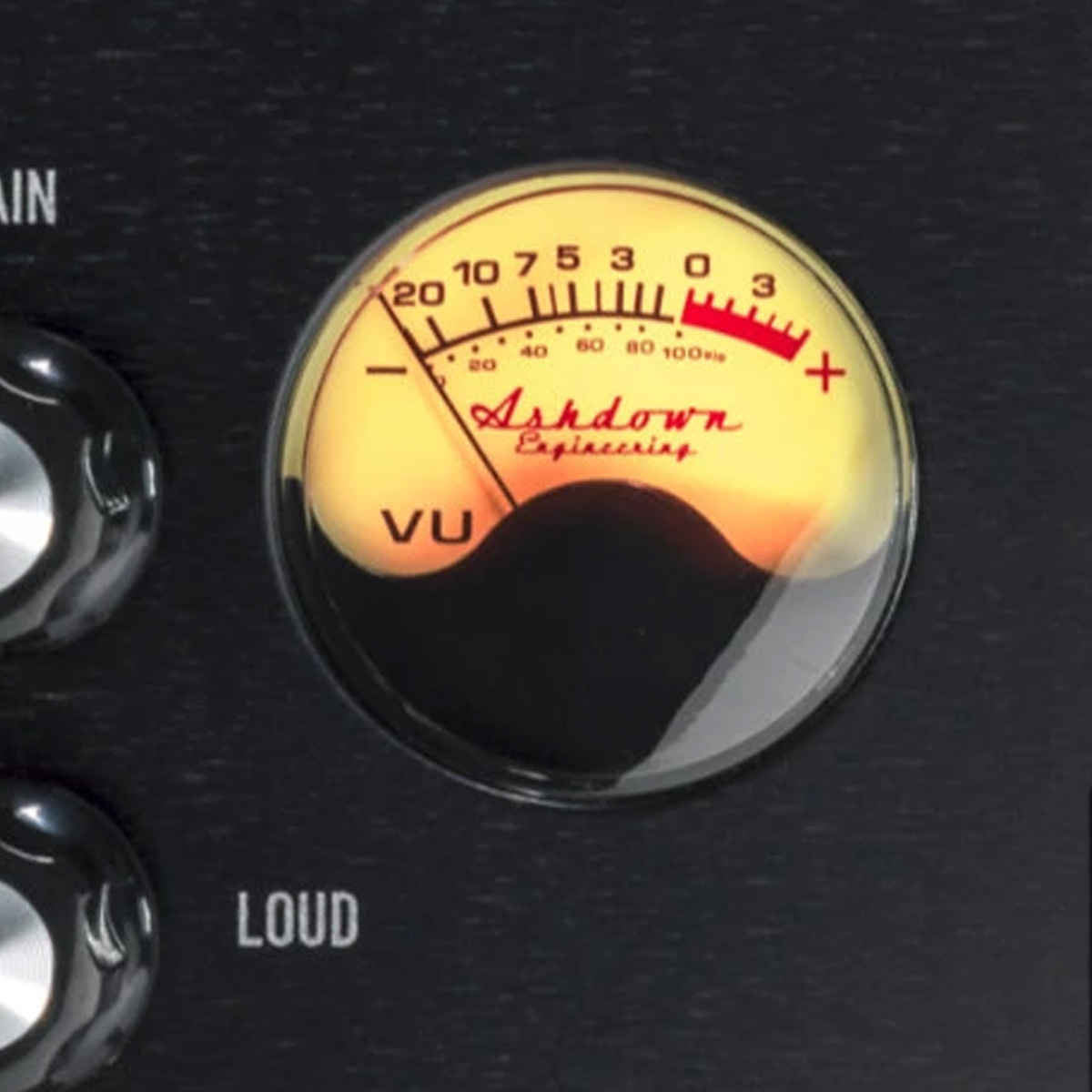 Esto se usa para monitorear el nivel de entrada de tu instrumento. El LED azul izquierdo se enciende en la VU cuando se selecciona Drive 1.
