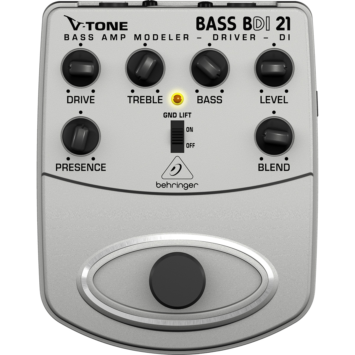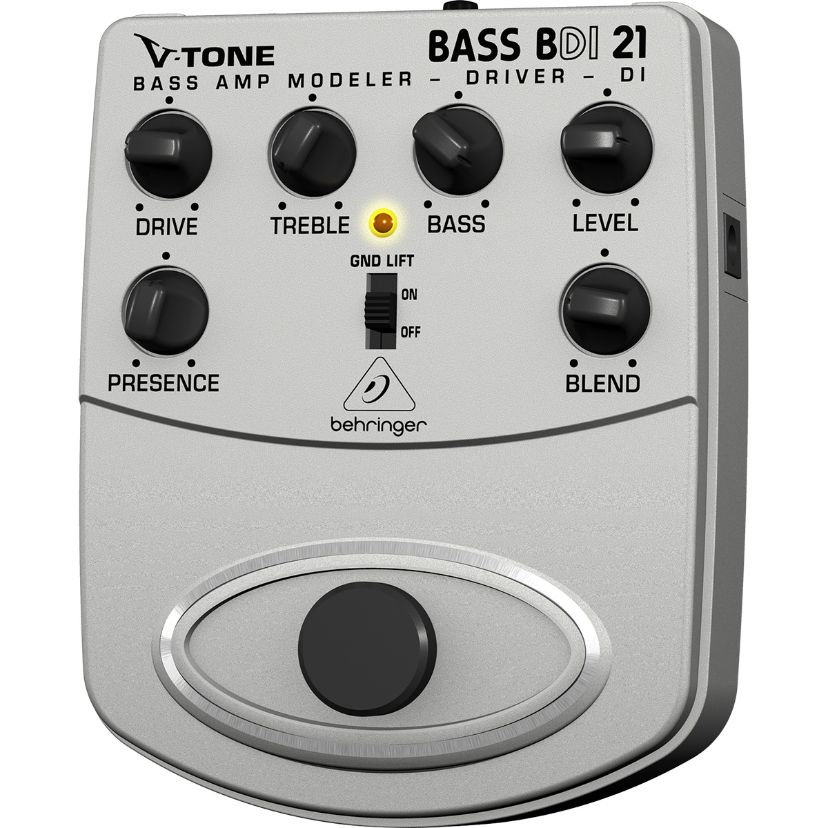 Pedal modelador de amplificador para bajo, preamplificador para grabación y cajadirecta, auténtica tecnología de modelado V-TONE capaz de marcar grandes tonosde bulbo vintage, sonidos funky slap, crujientes distorsiones y mucho más, proporciona todo un camión de grandes amplificadores en un pequeño y único pedal, desde amplificadores tradicionales de bajo hasta los sonidos amplificados modernosque normalmente requieren una gran cantidad de efectos, auténtica emulación de circuitería de bulbos que puede mezclarse con la señal directa de graves por medio del control de la mezcla, control de presencia para definición y armónicos superiores, además de un ecualizador ultra musical de 2 bandas ajustado específicamente para bajo, modo de cada directa dual para salida directa de grabación con emulación de bulbo o caja de inyección directa activa estándar en modo bypass, salida disponible en TS 1/4” o conectores XLR dorados balanceados, interruptor ground-lift que elimina los problemas típicos de loop de tierra, funciona con una pila de 9V o con adaptador de corriente (no incluido), dimensiones: 127 x 100 x 50 mm, peso: 0.46 kg.