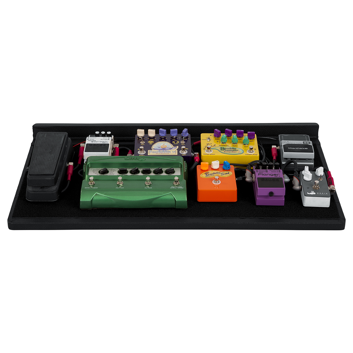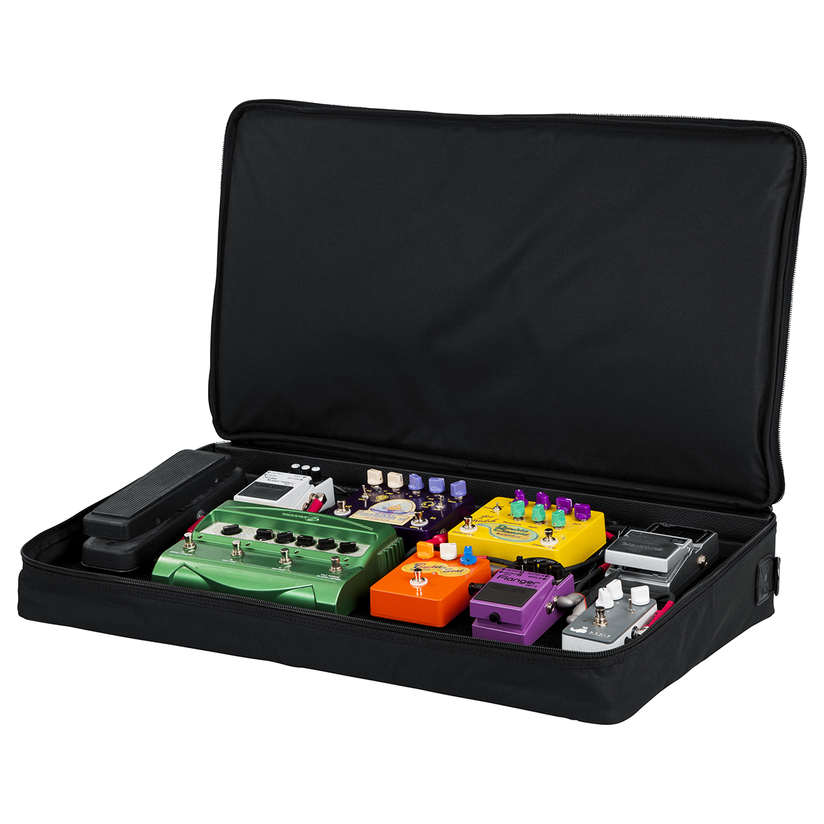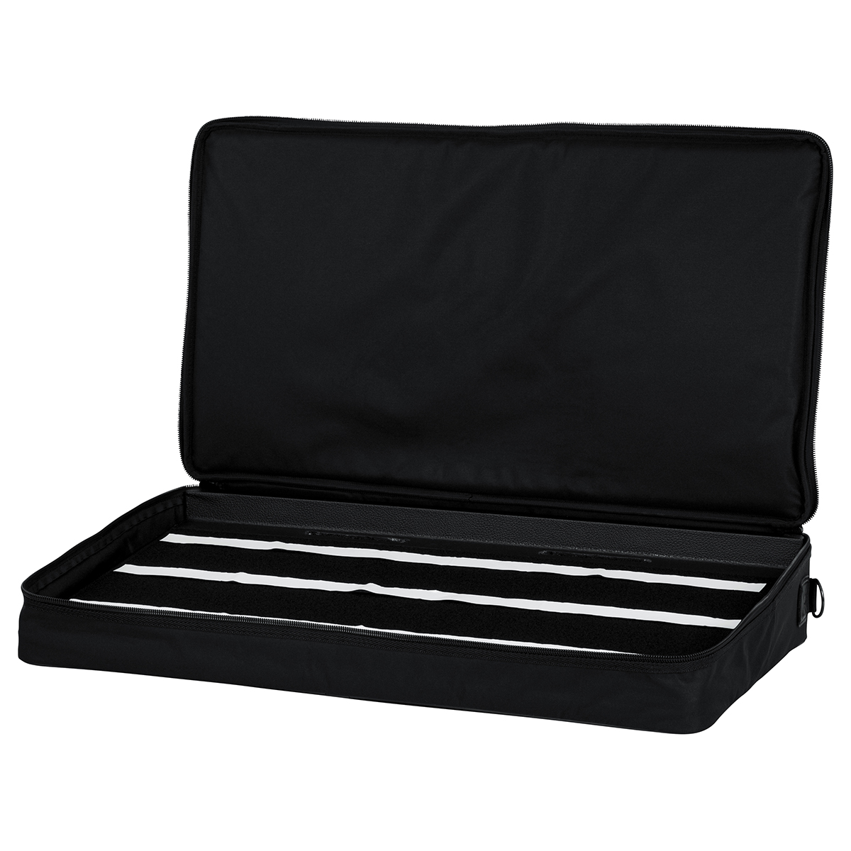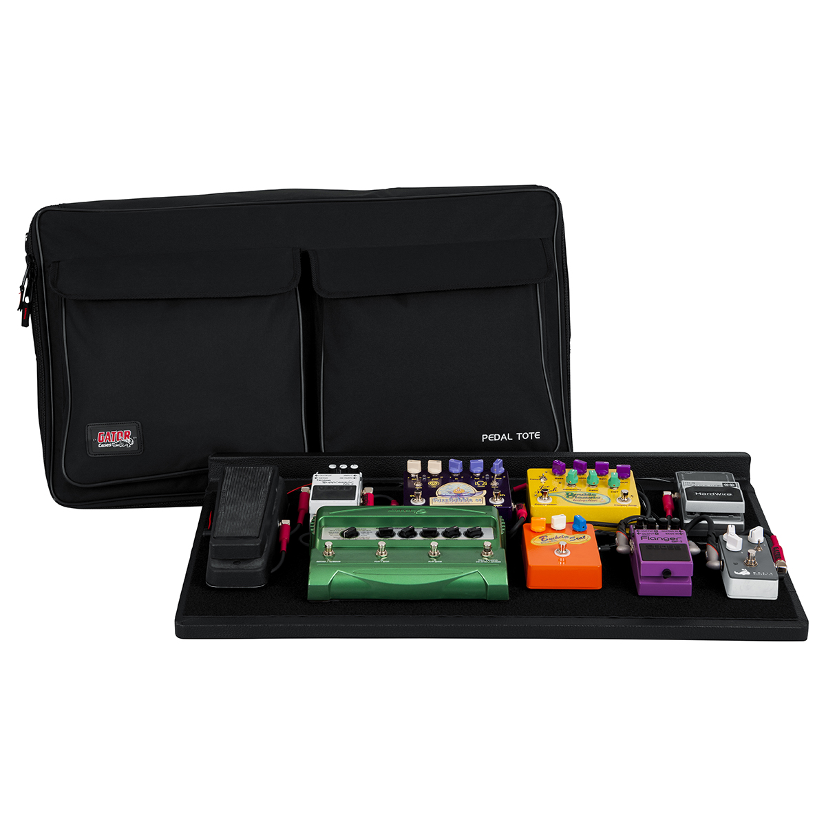 Pedalera con funda, 30” x 16” pulgadas, fabricada con madera contrachapada cubierta de látex, asa de transporte que se desliza en un estuche de transporte acolchado de nylon resistente, la placa cuenta con orificios de acceso para que los cables pasen por debajo de la pedalera para utilizar los 4 tornillos de montaje suministrados para Gator G-BUS y fuentes de alimentación de salida múltiple de tamaño similar, bolsillo exterior para cables, la cara de la pedalera está cubierta con velcro para sujetar los pedales, también incluye velcro de sujeción.