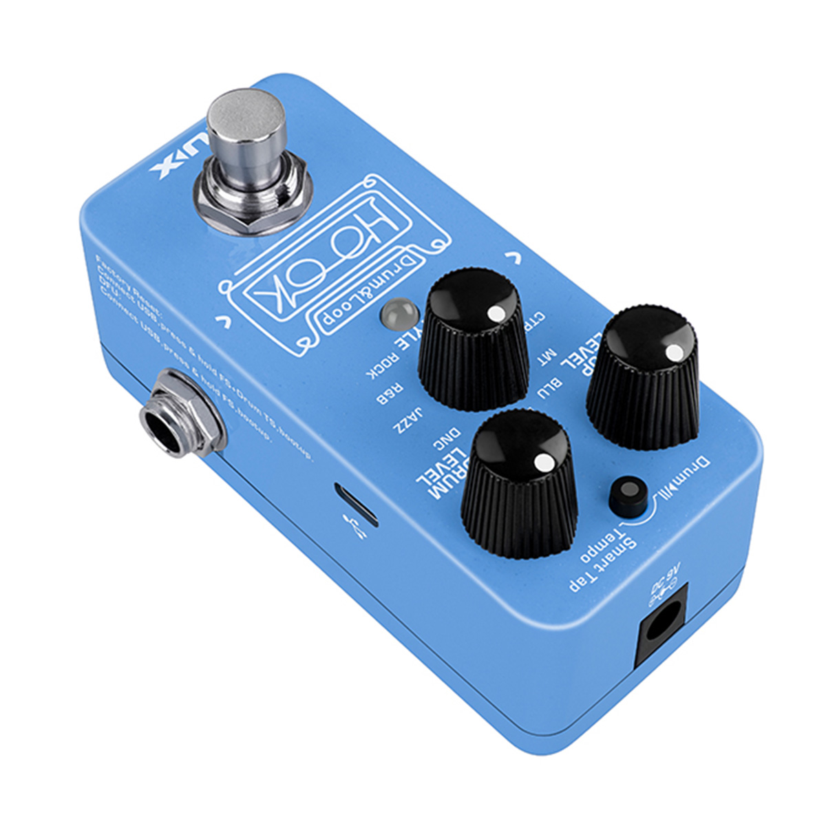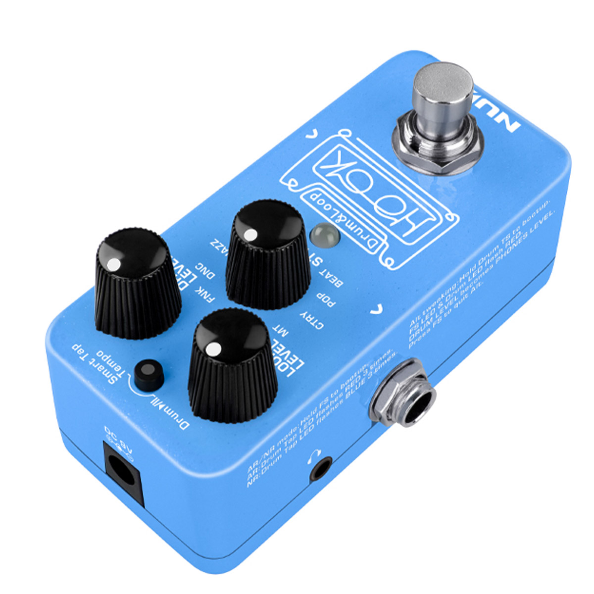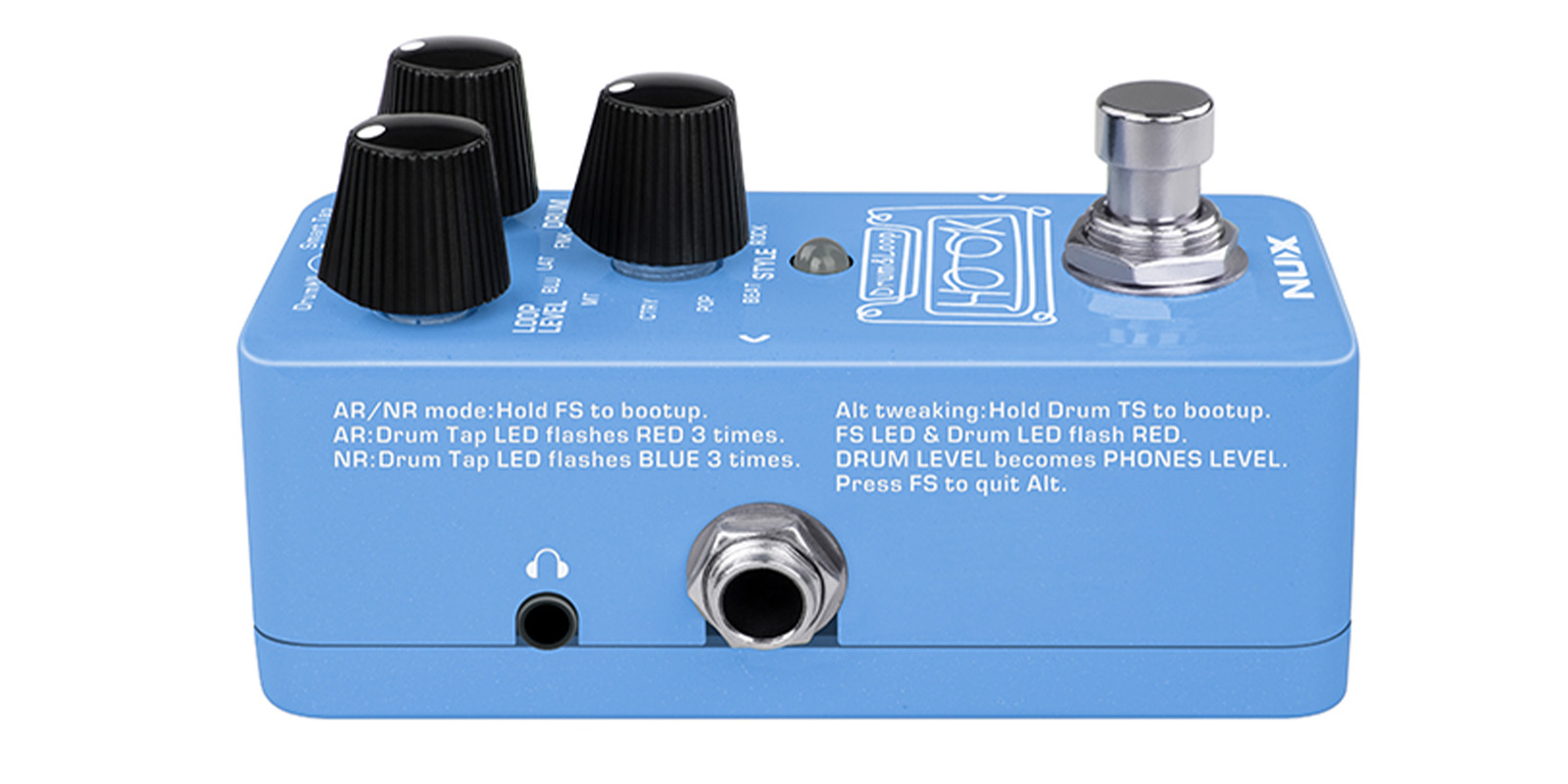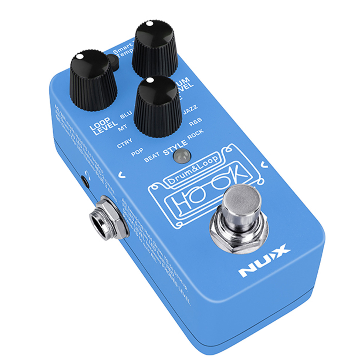 El HOOK Drum & Loop (NDL-3) es un pedal mini looper con detección automática de tempo. Bucle de frase de 24 bits con ritmo de detección automática de tempo en una mini caja. 11 estilos de ritmo con Smart Tap Tempo. Grabación de hasta 6 minutos, sobregrabaciones ilimitadas.Los volúmenes de batería y bucle se pueden ajustar por separado.Reproducción independiente de bucles y tambores. True-bypass y dry-through analógico. Auricular de 1/8” para práctica silenciosa y bajo consumo de energía. (menos de 100mA) cuenta con puerto USB-C para actualización de firmware e importación/exportación de archivos.