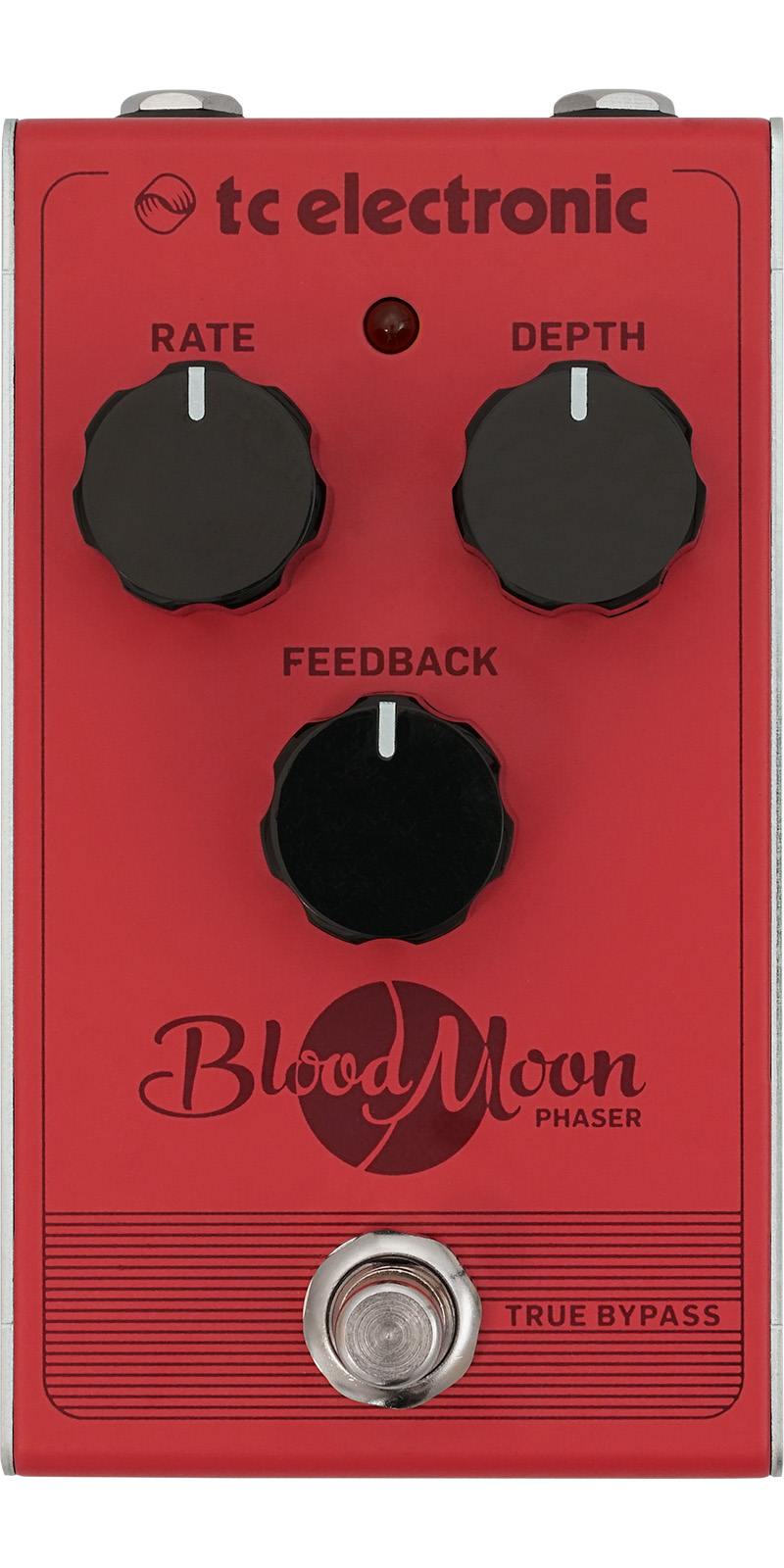 Rate.Controla la velocidad de la modulación. LOW para giros tranquilos y MAX para una gran invasión extraterrestre.Depth.Controla cuán pronunciado es el efecto. Feedback.Esta perilla te permite alimentar la parte de salida del filtro en el circuito. Esto crea un efecto resonante que inflige un tono irregular sobre el sonido que pasa.True Bypass.Cuando Blood Moon Phaser está encendido suena, cuando no lo está, lo deja solo.