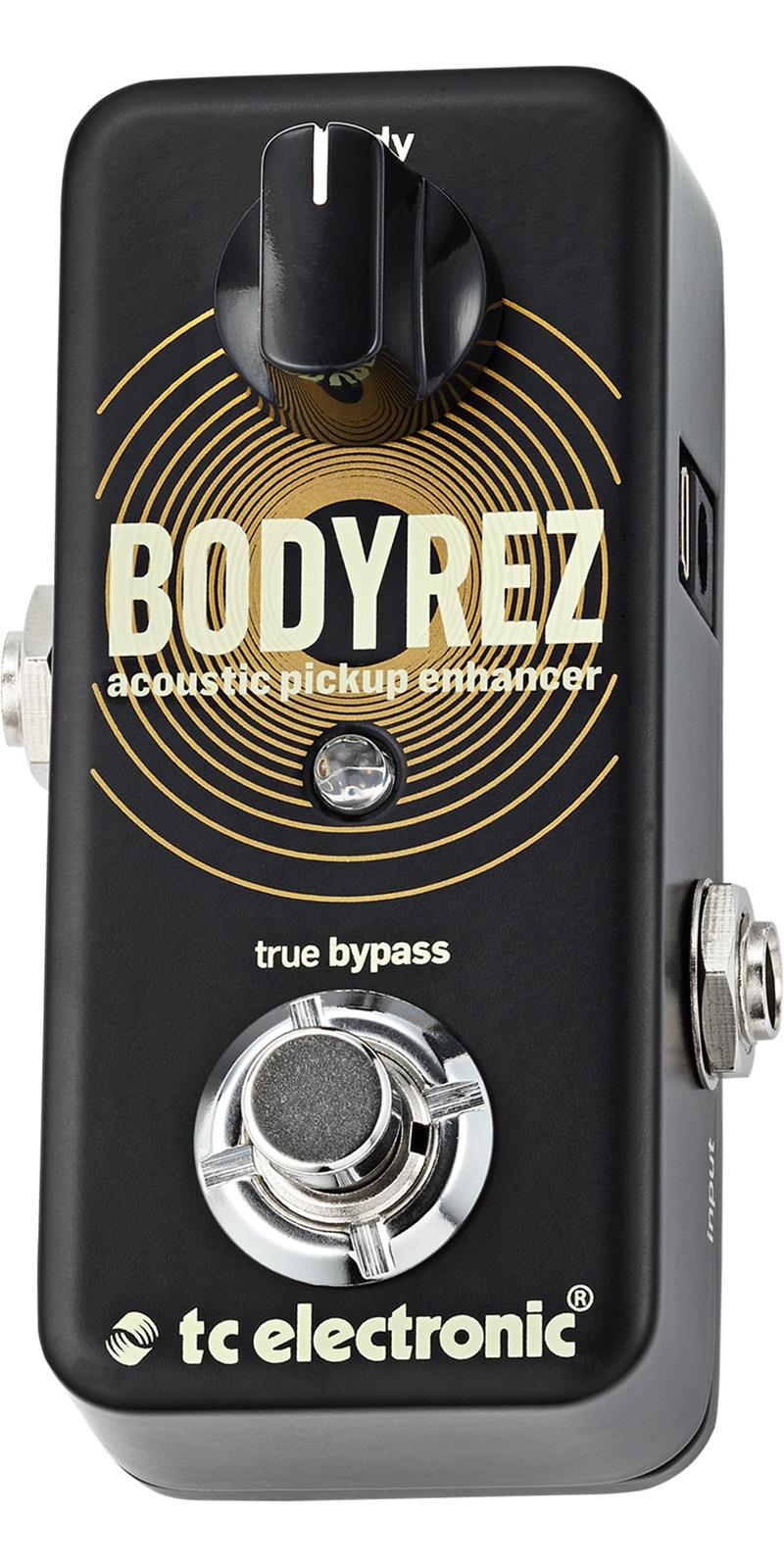 BodyRez es la nueva herramienta indispensable para cualquiera que toque guitarra acústica. Diseñado para restaurar la resonancia acústica natural de tu instrumento, cuando se utilizan pastillas under-saddle, BodyRez te da un sonido más natural simplemente girando una perilla única. Conseguir un gran sonido acústico no podía ser más fácil, con la dicha armónica ahora solamente lo tienes a una perilla de distancia.Sonido de guitarra acústica con calidad de estudio.Supresión de retroalimentación incluida.Restaura la sensación natural al tocar.No hay nada más fascinante que el rico y nítido sonido natural de una guitarra acústica. Lamentablemente, la mayoría de las pastillas acústicas toman ese sonido tridimensional y lo hacen más plano y menos atractivo que un pastel quemado. Es aquí donde entra el BodyRez. Con BodyRez es como si tuvieras tu propio ingeniero de audio profesional personal contigo en todo momento, asegurando que tendrás el mejor sonido, eliminando las trampas potenciales de retroalimentación. Una vez que conectes el pedal, te preguntarás cómo es que has sobrevivido sin él.El complejo hecho simpleza.A pesar de que el BodyRez emana simplicidad con su diseño de una línea, hay un montón de cosas interesantes sucediendo bajo el BodyRez aplicando una gran cantidad de filtros pre configurados combinando una sutil compresión rápida para traer a la vida nuevamente tu sonido acústico amplificado. Todos estos factores han sido cuidadosamente medidos y meticulosamente seleccionados para ayudarte a sacar todo lo bueno de tu instrumento. Todo lo que hay que hacer es encenderlo y comenzar a cautivar a la multitud.Siéntete bien.Cuando tocas tu guitarra acústica en casa todo se siente bien. El sonido, la respuesta, el ambiente natural, es todo lo que hay. Pero en el escenario y conectada a un sistema de amplificación es una historia diferente. BodyRez restaura la sensación natural al tocar una guitarra, acústicamente opuesta a esa súper sensación y sentimiento que tienes cuando tocar un sistema piezoeléctrico. Podríamos utilizar diversas palabras para saber lo que es el BodyRez, sin embargo cuando lo utilices, sabrás exactamente de lo que estamos hablando.