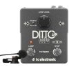 Pedal looper para voz, fácil de usar, con ganancia inteligente de micrófono, overdubs ilimitados, control total con 2 switches o control de micrófono utilizando el micrófono MP75 de TC Helicon, dimensiones: 140 x 90 x 60 mm, peso: 42 g, carcasa metálica die-cast en 2 partes y base de goma, entrada XLR hembra balanceada con potencia phantom, salida XLR macho balanceada, rango dinámico: >104 dB, respuesta de frecuencia: 20 Hz – 20 kHz, entrada USB para firmware y control, consumo de energía: 5.6 watts, incluye adaptador de corriente de 12V, cable USB y guía del usuario.