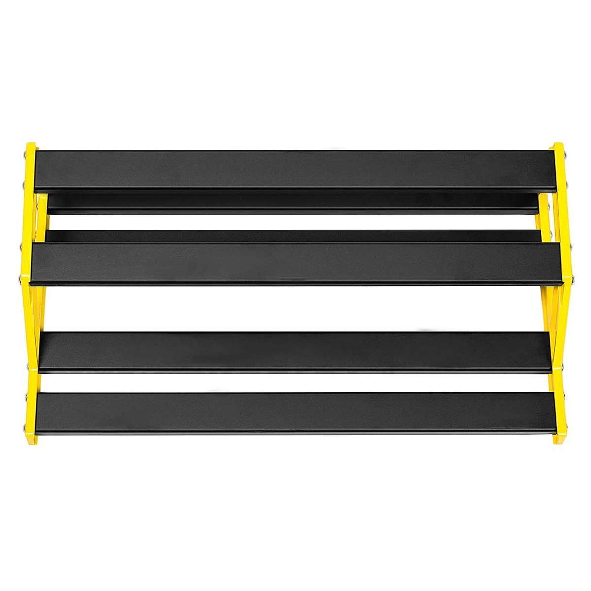 Si estás utilizando algún pedal de control (como un controlador MIDI o NUX Cerberus), puedes diseñar las capas de la plataforma con suficiente espacio para cambiar los cables fácilmente. Puedes colocar la fuente de alimentación entre las capas, es muy protectora.