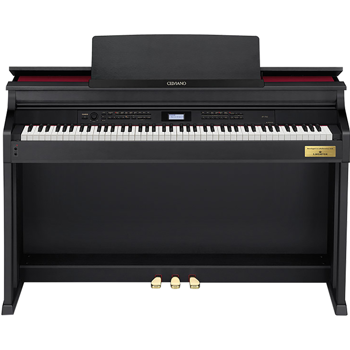 88 teclas, teclado con acción de martillo en escala Tri-sensor II, teclas en imitación de ébano y marfil.