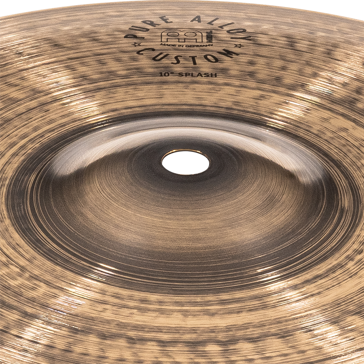 Platillo splash de 10” pulgadas, serie Pure Alloy Custom, ataque nítido, tono cálido, martillado en forma, fabricado en Alemania, peso mediano-delgado, mezcla tonal excepcional.