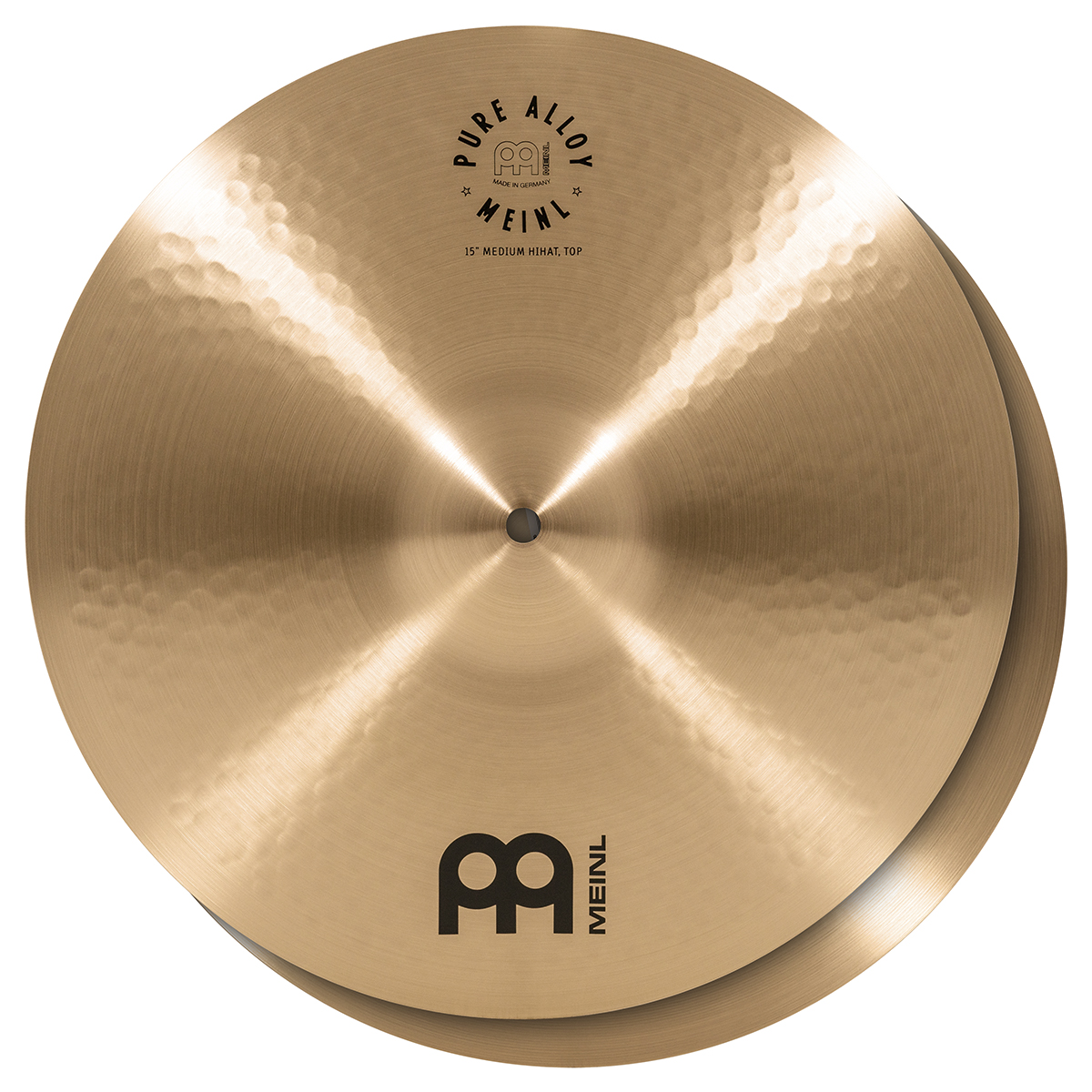 Hi-Hats Pure Alloy de 15” pulgadas, timbre oscuro, terminado tradicional, fabricado con la nueva aleación especial Pure Alloy de Meinl, torneado pinpoint.