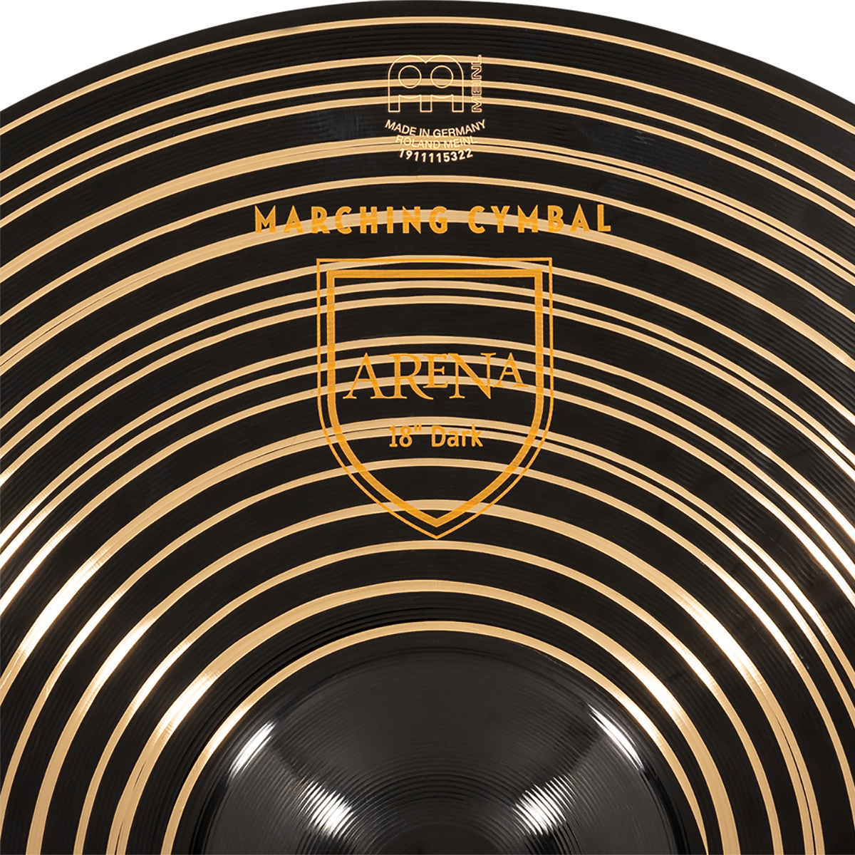 Platillo de marching de 18” pulgadas, serie Professional Arena Dark, hecho por computadora, fabricado con aleación de bronce B10, para profesionales principiantes o ambiciosos, hecho en Alemania, peso mediano.