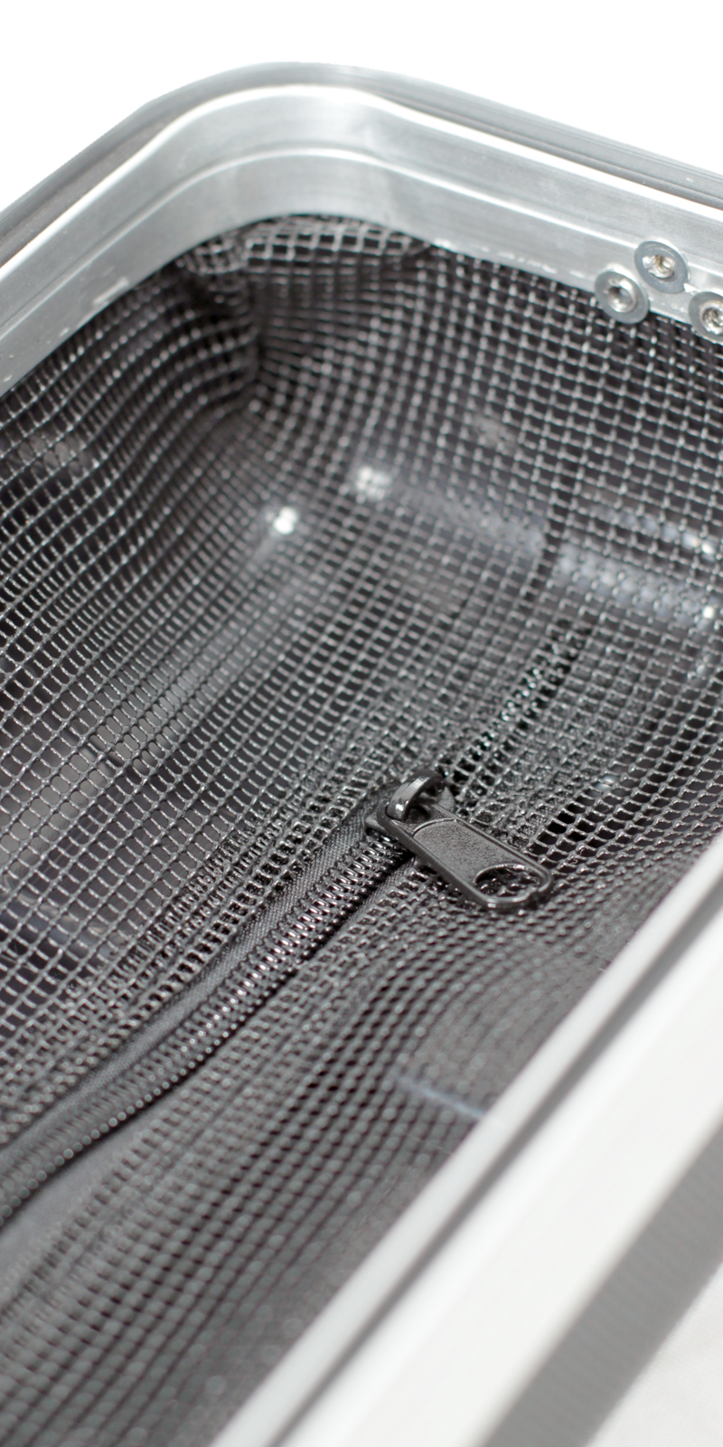 Tapas equipadas con un práctico bolsillo de malla con cierre para guardar cables y accesorios.