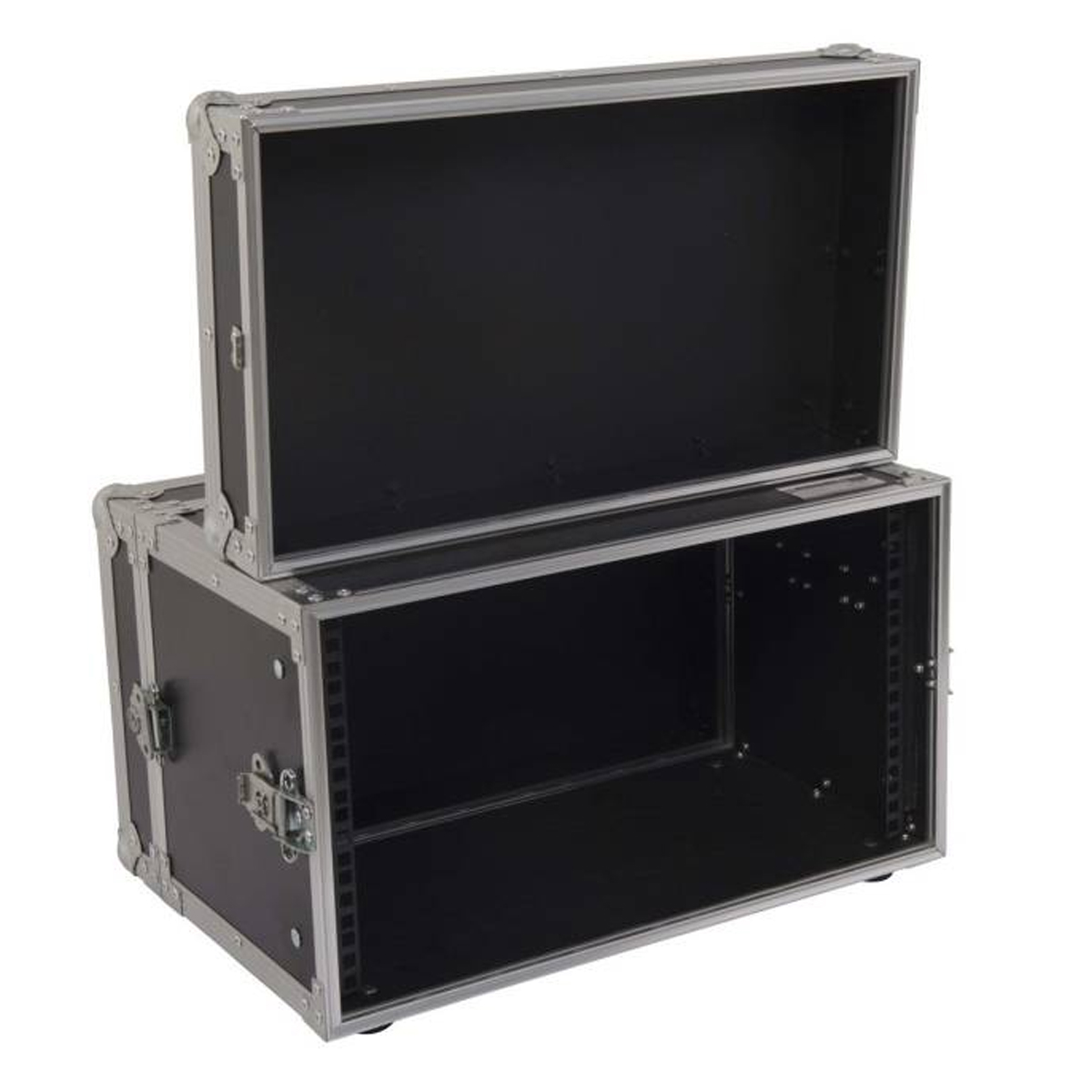 Rack PROEL de contrachapado marino fenólico de 5 mm de grosor, cubierta laminada negra antiarañazos, esquina y refuerzos de acero y perfil de aluminio. Con profundidad interna utilizable de 250 mm y altura interna utilizable arriba/abajo de 70 mm con acabado interno y pintado de negro. Unidades de rack 2U, cierre de 4 pequeños galvanizados de tipo mariposa. 2 Asas de acero galvanizado con muelleen color Negro. Incluye: Riel frontal para rack. Juego completo de tornillos, arandelas y tuercas. Pies de goma negra