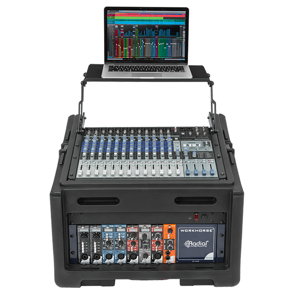 - Rieles de acero roscado vertical de 4U en la parte delantera.