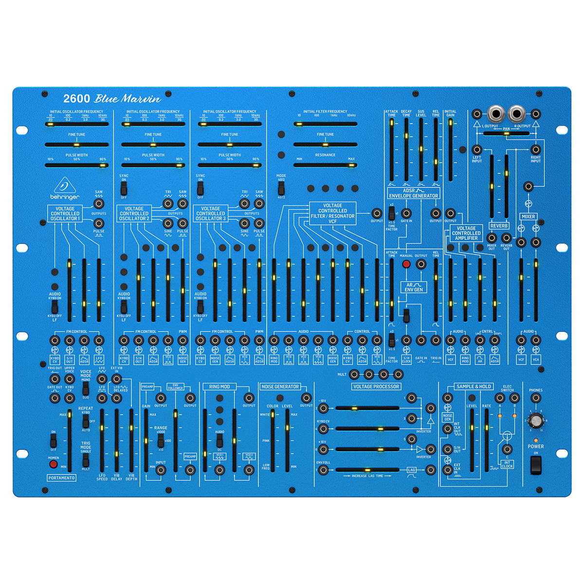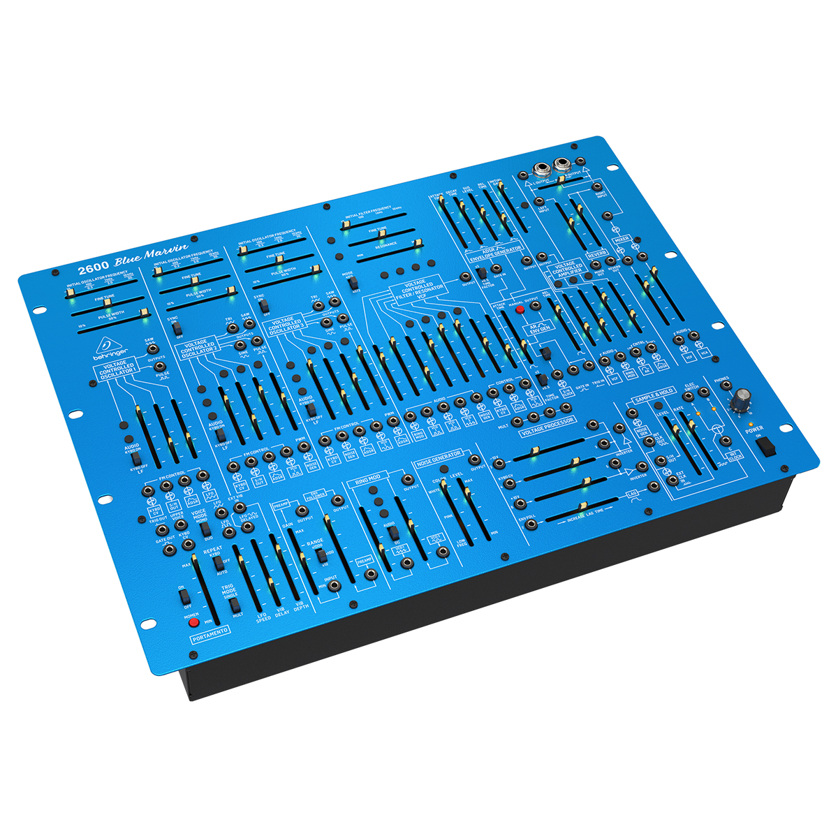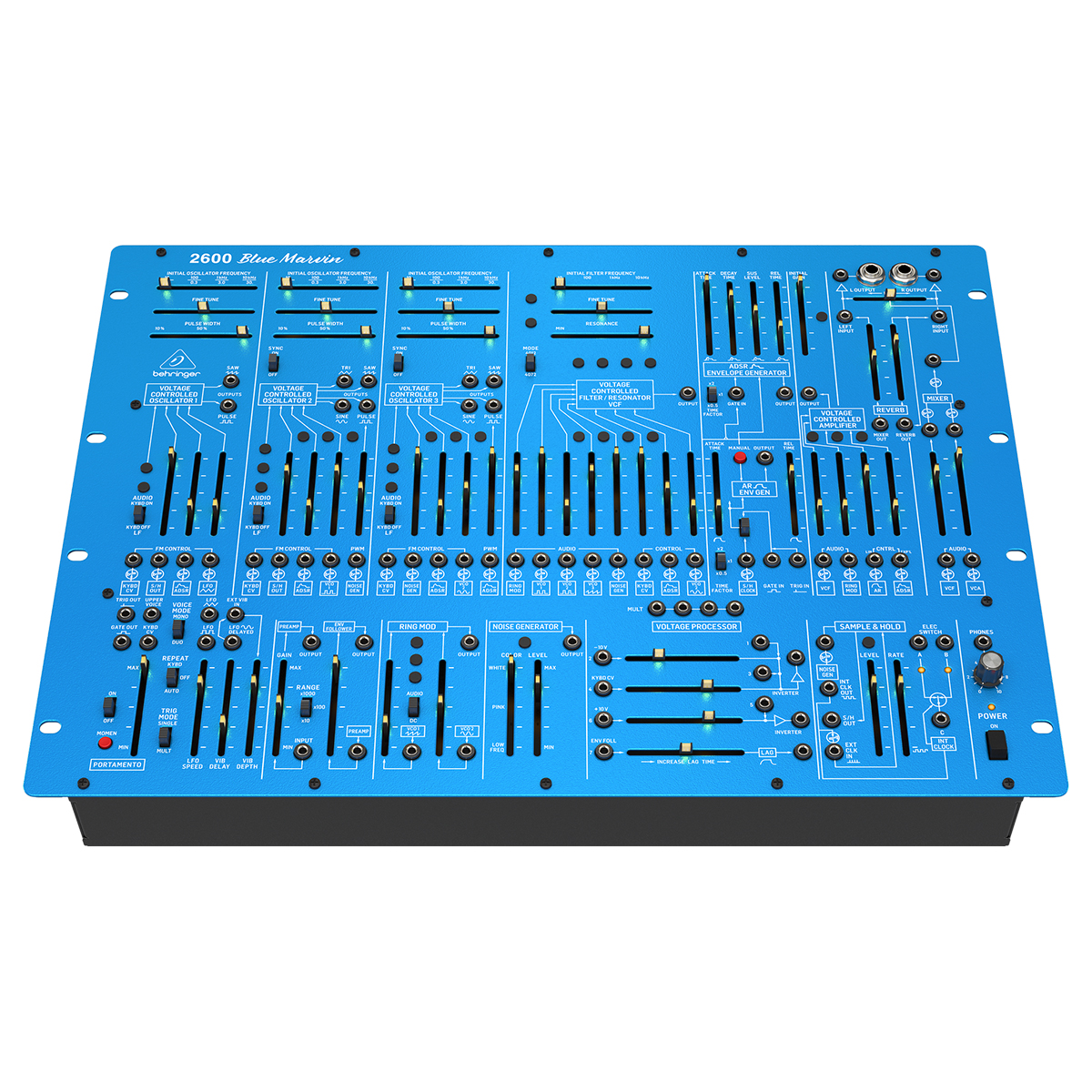 Sintetizador analógico semimodular edición especial con 3 VCO y VCF multimodo en formato de montaje en rack de 8U, permite una creación de música increíblemente gruesa, reproducción auténtica de los circuitos ultra raros Arp Blue Marvin de los años 70 con transistores y JFET combinados, la arquitectura semimodular no requiere parches para un rendimiento inmediato, 3 VCO, cada uno con modo LFO, entradas FM y múltiples salidas en forma de onda para una impresionante paleta de posibilidades tonales, VCF multimodo con salida de paso bajo dedicada con salida adicional conmutada alta/notch, increíble variedad de módulos que incluyen ring modulator, lag processor, sample & hold, Schmitt trigger y seguidor envelope, generadores de envolvente ADSR y AR con factor de tiempo conmutable, spring reverb digital realista para inspiradores efectos de sonido, generador de ruido con color continuamente variable, 2 LFO’s dedicados con salidas de onda sinusoidal y de pulso, opción de distorsión de filtro posterior conmutado (PFD) / inversor en el procesador de voltaje, entrada diferencial (+/-) VCA con entradas de control lineales y exponenciales, las funciones adicionales incluyen atenuador, mezclador, inversor, limitador de velocidad de respuesta y múltiple de 4 vías para una flexibilidad de parcheo creativa, entrada de audio externa para procesar fuentes de sonido externas, 58 faders y 15 botones te brindan acceso práctico, directo y en tiempo real a todos los parámetros, 83 entradas / salidas de cable de conexión para lo último en flexibilidad de configuración, implementación MIDI completa con canal MIDI y selección de prioridad de voz.