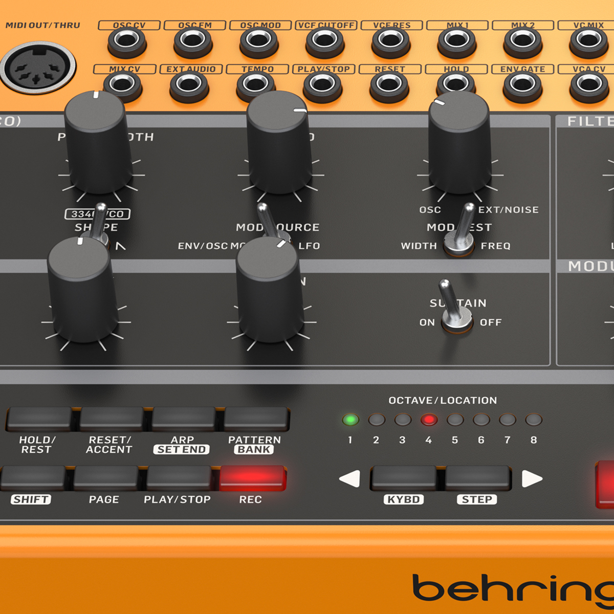 Número de pasos: 32 pasos máximo por patrón.Número de patrones: 64 patrones máximo.Memoria de almacenamiento: 8 bancos con 8 patrones cada uno.Controles: Tempo/gate length.Switches: Hold/rest, reset/accent, arp/set end, pattern/bank, shift, page, play/stop,record, keyboard mode, step mode, 13 note keyboard.LEDs: 8x octave/location.