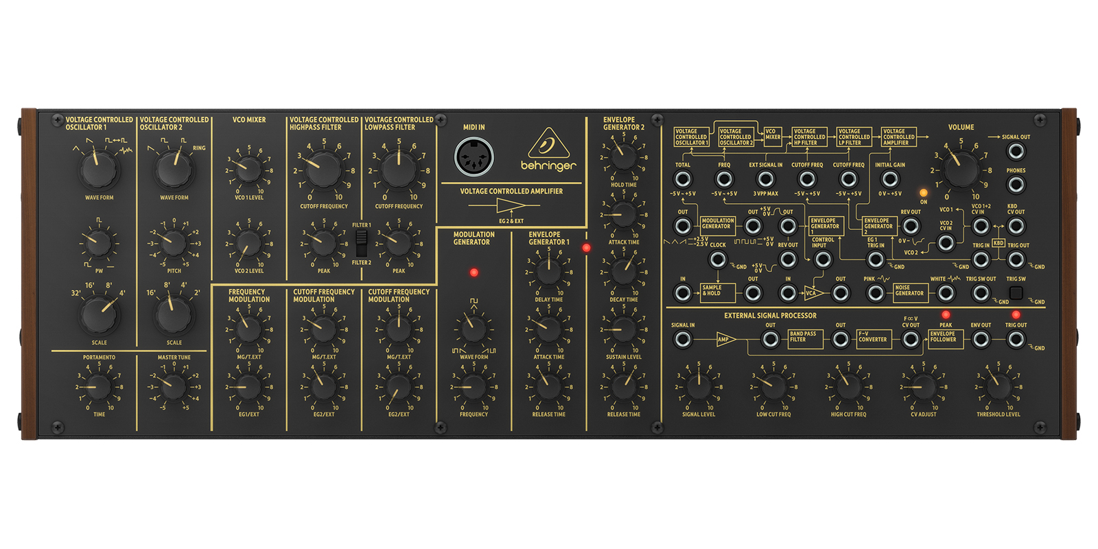 Sample y Hold:Entrada: 5 Vpp.Salida: 5 Vpp.Entrada Clock: A GND.VCA:Entrada: -5 V a +5 V.Salida: -5 V A +5 V.Control de entrada: 0 a +5 V.Generador de ruido:Salida de ruido rosa: 5 Vpp.Salida de ruido blanco: 5 Vpp.Salida Trigger switch: A GND.Trigger:Entrada: A GND.Salida: a GND.VCO:Entrada VCO 1+2 CV: 0 a +8 V.Entrada de frecuencia VCO 1+2: -3 V a +3 V.VCA:Ganancia inicial: 0 a 5 V.Low pass VCF:Frecuencia: -5 V a +5 V.Frecuencia cutoff High pass VCF: -5 V a +5 V.Señal externa: Entrada: 3 Vpp.Entrada total (afecta VCOs y VCFs): -5 V a +5 V.Salida de teclado CV: 0 a +8 V (exponencial).Generador Envelope:Salida EG 1: 0 a +5 V.Salida reversa EG 1: +5 V a 0.Entrada trigger EG 1: A GND.Salida EG 2: -2.5 V a +2.5 V.Salida reversa EG 2: -2.5 V a +2.5 V.Modulación de forma de onda triangular/sawtooth: Salida: 5 Vpp.Modulación de forma de onda pulse/square: Salida: 0 a +5 V.Switches: Trigger out, momentary.
