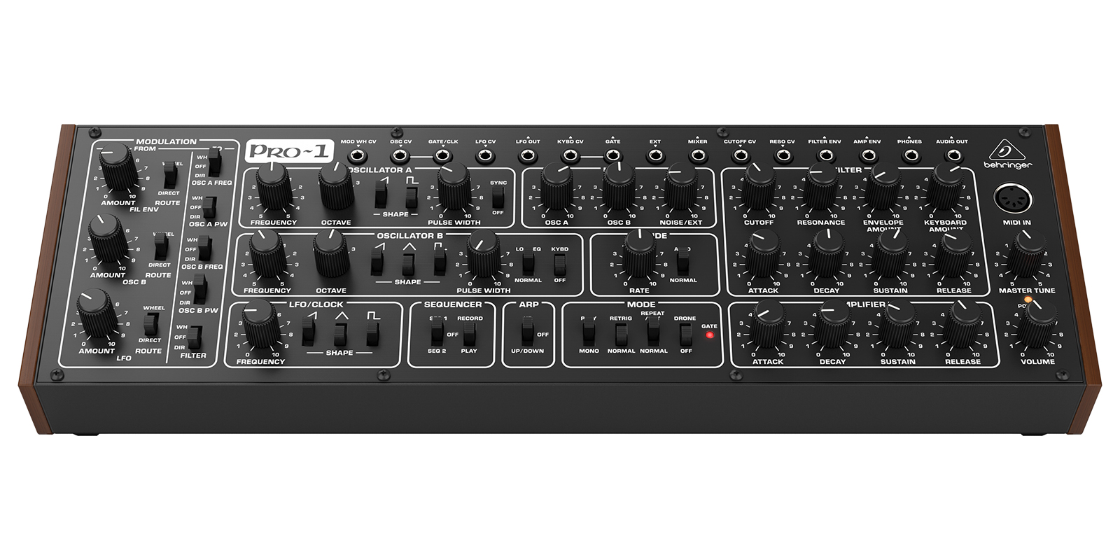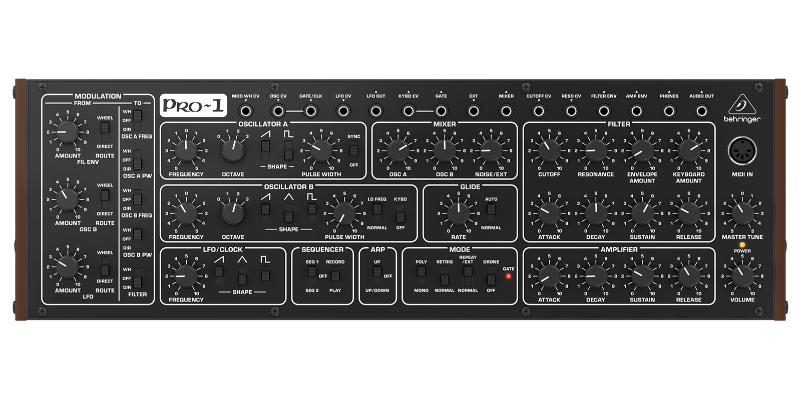 Controles:Frecuencia (OSC A&B): 0 a 10.Octava 0, 1, 2 o 3.Ancho de pulso (OSC A&B) 0 a 10-Switches:Shape (OSC A&B): Sawtooth, Pulse y Triangular (solamente OSC B).OSC A sync: On/Off.OSC B LO Freq o Normal.OSC B KYBD u Off.