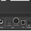 Salida: TS 1/4″, desbalanceado, máximo +12 dBu.Audífonos: TRS 1/8″, desbalanceado, máximo 7.5 mW@32 ohms.Impedancia de salida de audífonos: 8 ohms.MIDI In/thru: 2 x 5-pin DIN/ 16 canales.USB (MIDI): USB 2.0, tipo B.