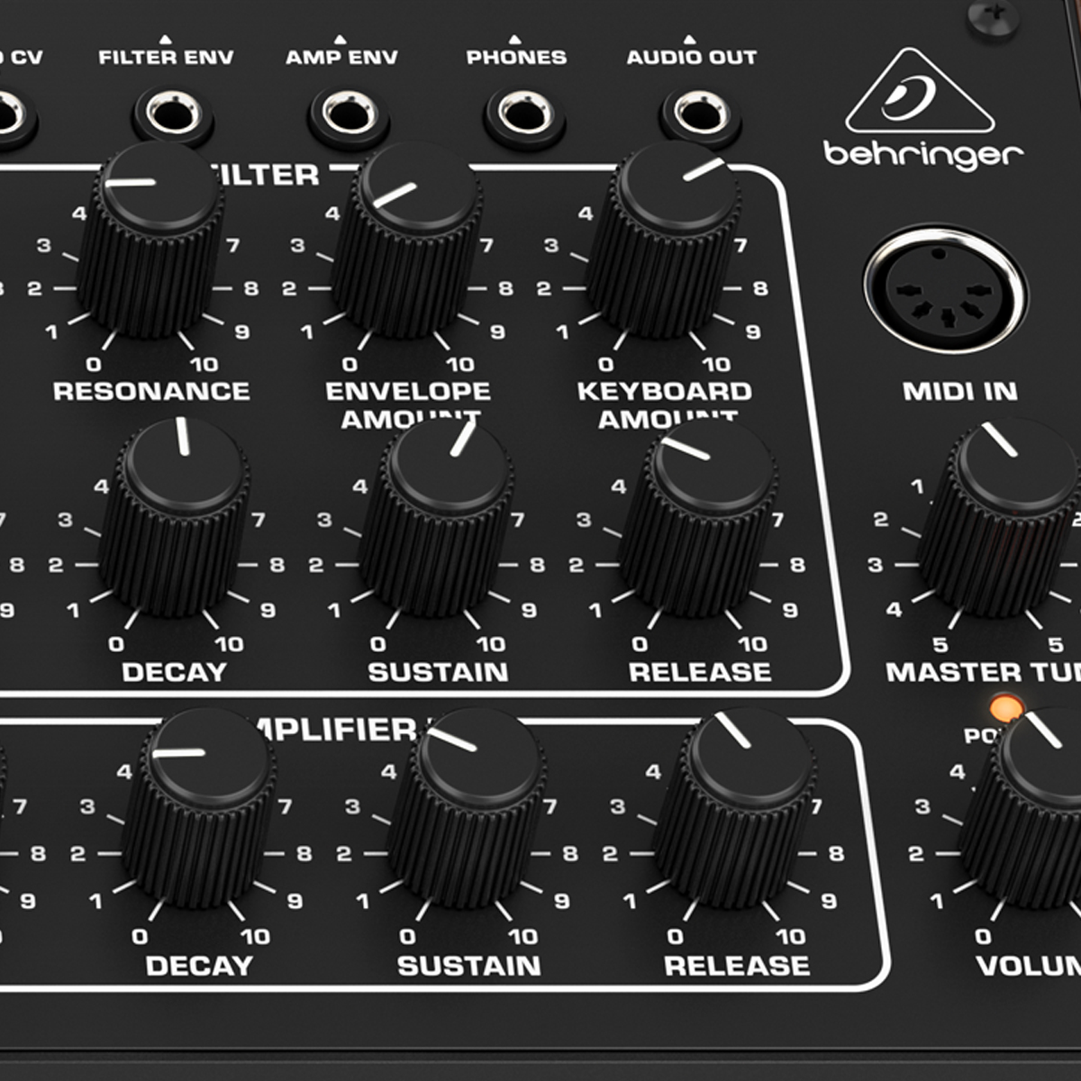 Controles: Cutoff frequency: 0 a 10, Resonancia: 0 a 10, Env amount: 0 a 10, KYBD amount: 0 a 10, Attack: 2.0 mS a 6.5 S, Decay: 2.0 mS a 15 S, Sustain: 0 a 5 V, Release: 2.0 mS a 25 S