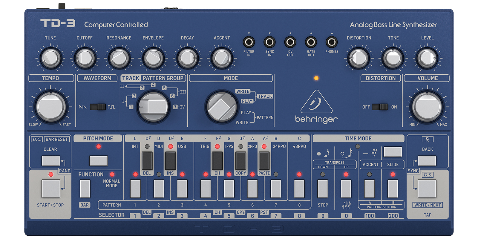 Número de voces: Monofónico.Tipo: Análogo.Osciladores: 1.VCF: 1 low pass.Envelopes: 1.