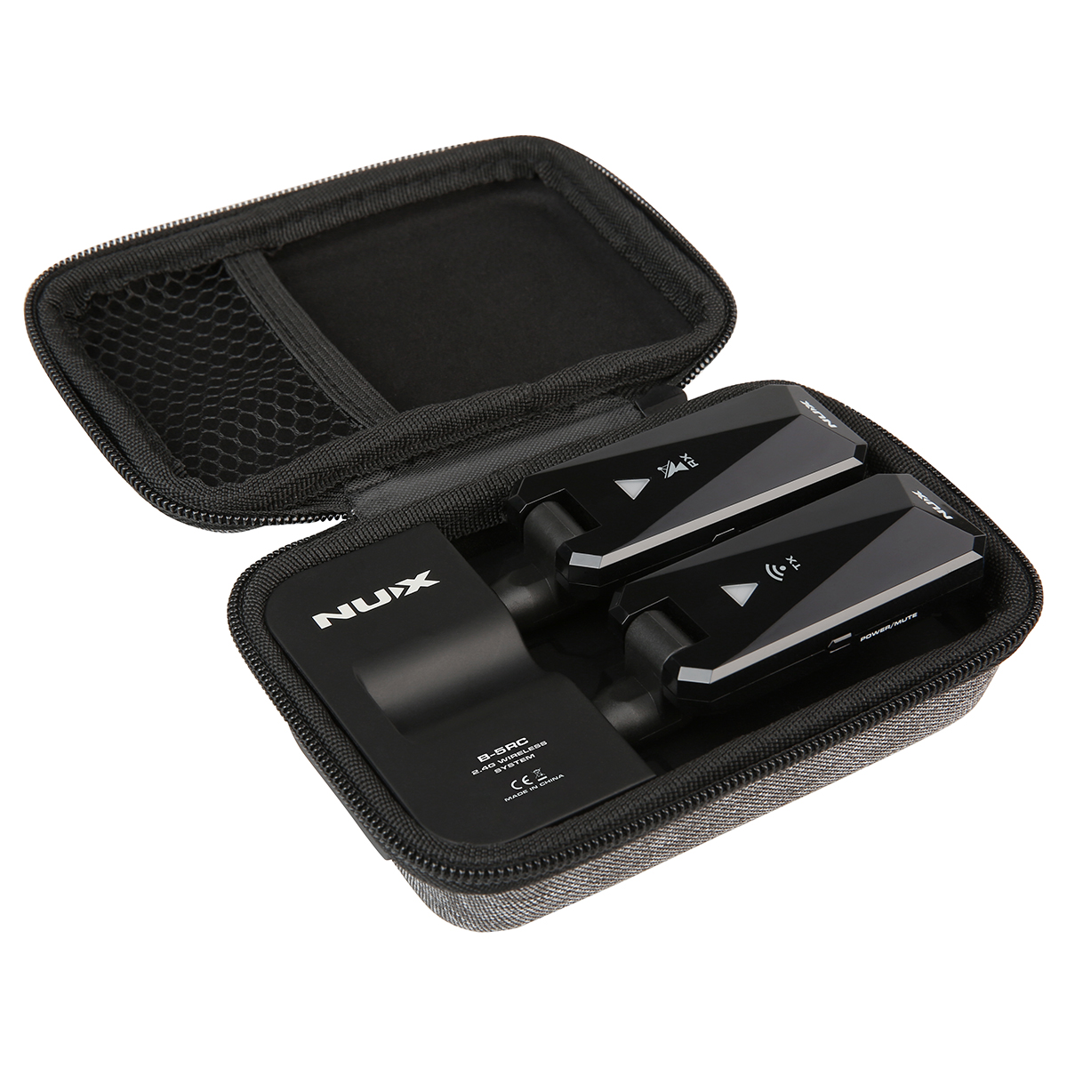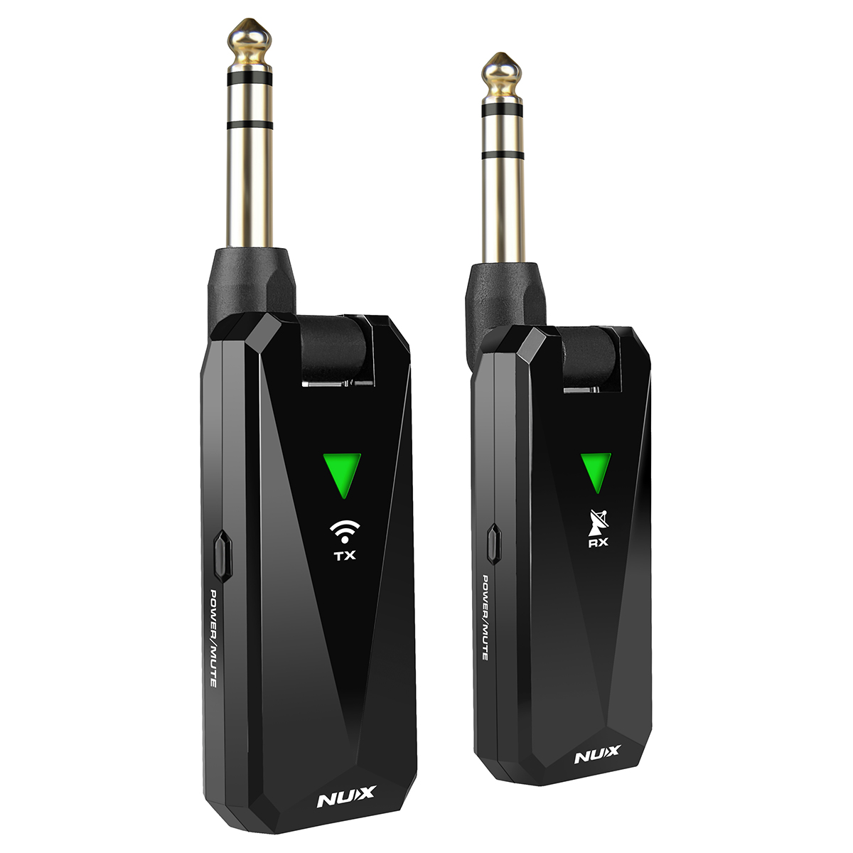 Cada par de B-5RC de NUX tiene un sistema de combinación rápida. Simplemente mantén presionado el botón de encendido para encender ambos dispositivos, conecta el transmisor a tu instrumento y el receptor a tu amplificador (o pedal, interfaz de audio, etc.) y estarás listo para tocar. Además tiene una útil función MUTE, sólo haz clic brevemente en el botón de encendido del transmisor cuando desees dejar de reproducir por un corto tiempo.