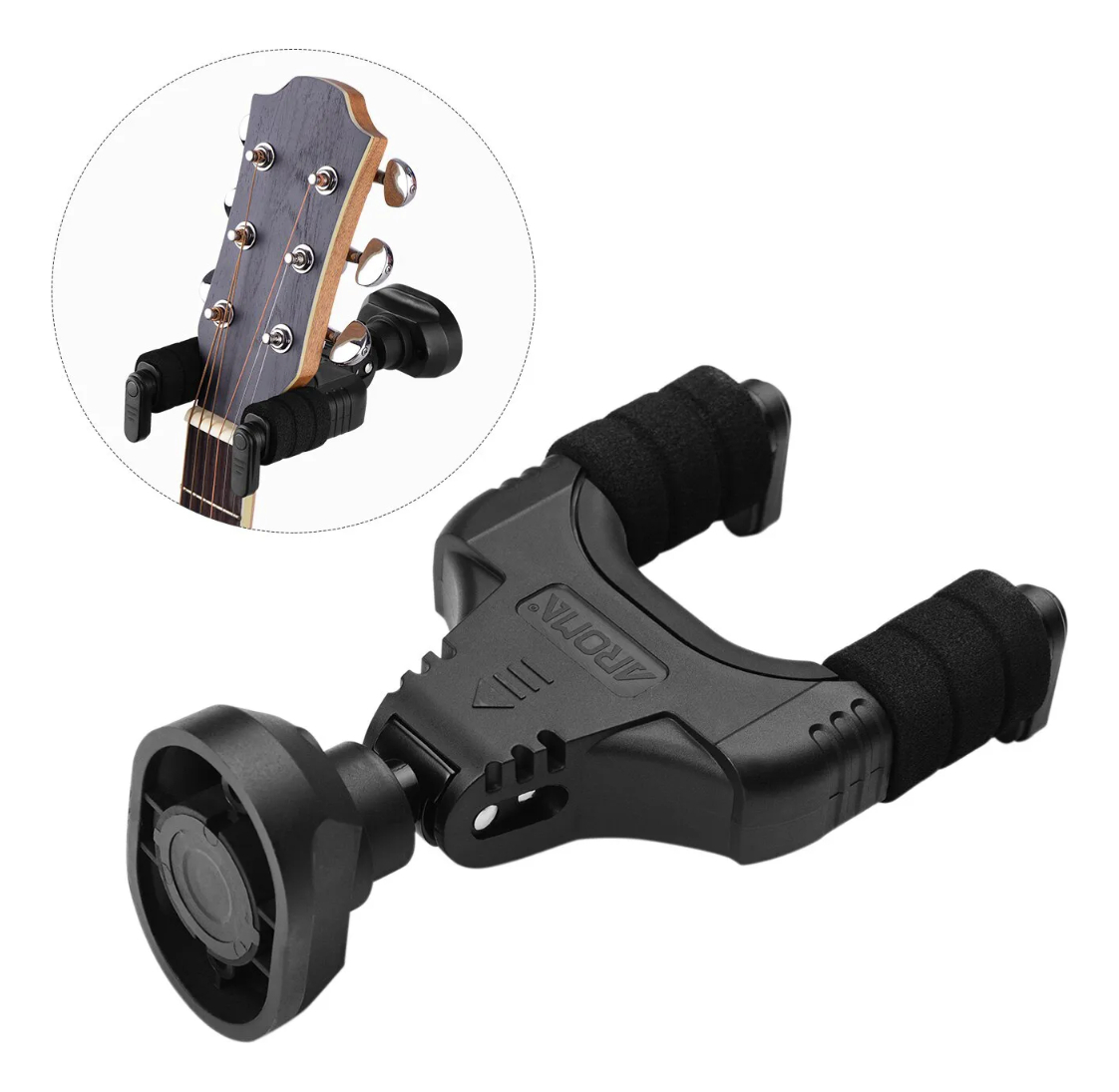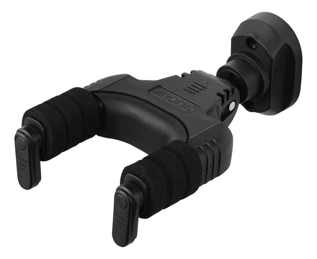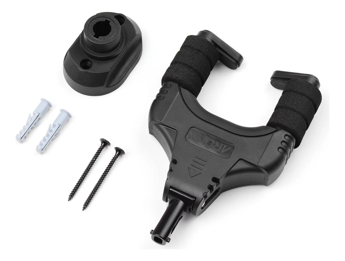 Presentamos el soporte de pared para guitarra Aroma AH-89 en color negro. Este soporte es de la marca Aroma, conocida por la calidad y durabilidad de sus productos. El modelo AH-89 está fabricado en nylon metálico, un material resistente que garantiza la seguridad de su instrumento.