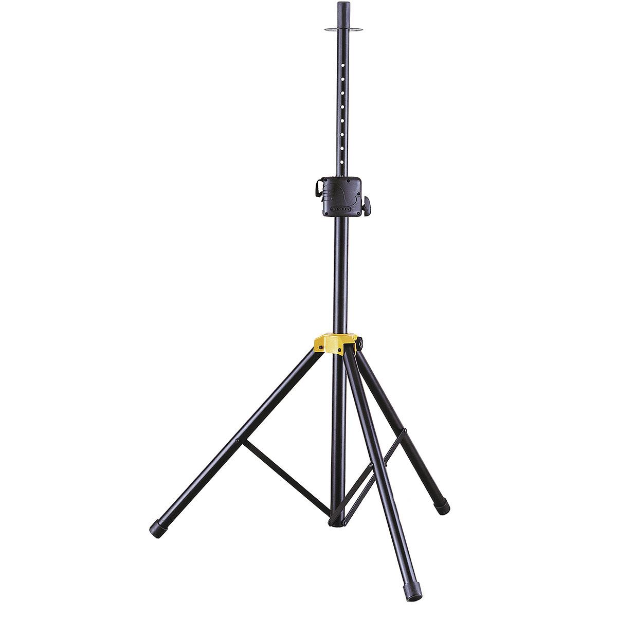 Es un sistema de bloqueo para fijar de forma rápida la altura evitando que el peso del altavoz nos mueva hacia abajo el tramo ya elevado cuando estamos levantándolo. Gira la rueda para desbloquear y bajar. Un pin facilita una mayor seguridad cuando estamos cargando el altavoz.