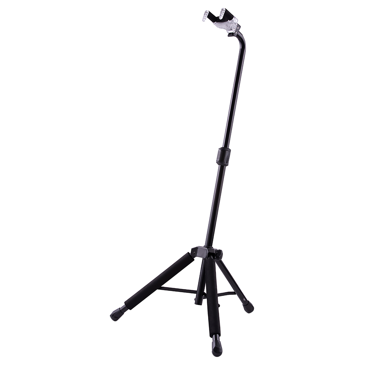 Soporte para guitarra, estructura Plexi AGS con refuerzo de policarbonato que refuerza la máxima resistencia a la presión y es resistente a roturas, se adapta a más tamaños de brazo de 40 mm a 52 mm (1.57” a 2.05”), el adjunto N.I.N.A. (ajuste de brazo de instrumento angosto HA301) especialmente diseñado para aumentar el grosor de los brazos AGS para acomodar instrumentos de brazo estrecho desde 28 mm (1.10”) como banjos y mandolinas, embrague de ajuste de altura instantáneo con pasador de bloqueo que ajusta la altura del soporte de forma rápida, fácil y segura, altura: 950 mm – 1150 mm, peso: 1.8 kg, radio base: 310 mm, capacidad de carga: 15 kg, tamaño plegado: 710 x 155 x 110 mm.