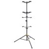 Soporte para seis instrumentos, yugo mejorado de agarre plegable automático (AGS), embrague de ajuste de altura instantáneo, contactos de goma de espuma especialmente formulada (SFF), respaldo ajustable, altura: 1,500 mm a 1,900 mm, peso: 5.4 kg, radio de la base: 530 mm, capacidad de carga: 40 kg, tamaño plegado: 1,220 x 160 x 160 mm.