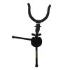 No ocupa espacio en el estuche del instrumento. Se pliega de manera compacta para guardarse en la campana de el saxofón.