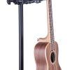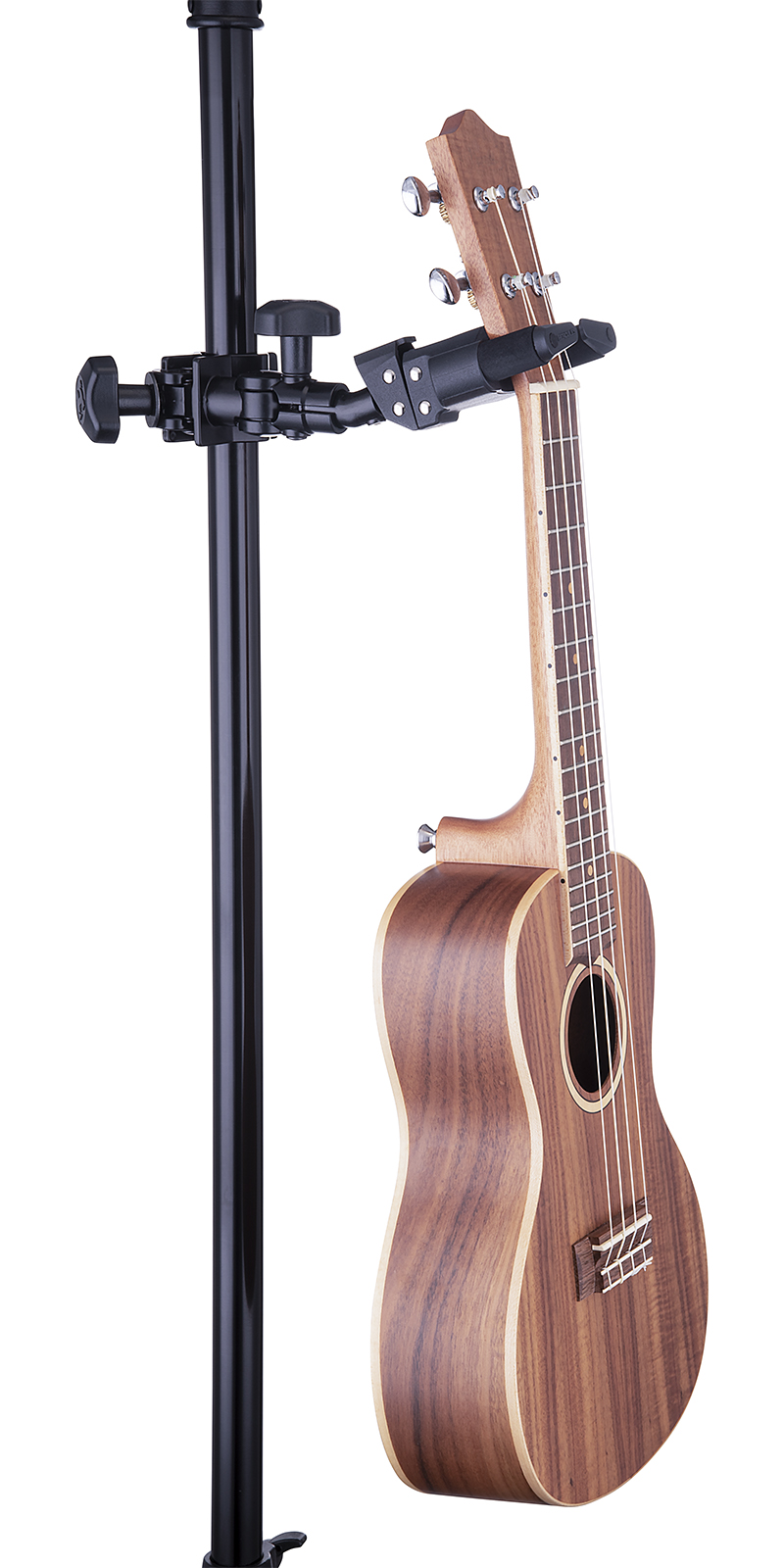 Soporte para ukelele, sistema de agarre automático (AGS), abrazadera totalmente ajustable, se ajusta a ukeleles de todos los tamaños, se puede conectar a cualquier tubo o escritorio dentro de las siguientes dimensiones: redondo: 15.8 mm – 30 mm (0.62” – 1.18”) y cuadrado: 18 mm – 25.4 mm (0.7” – 1”), peso: 0.4 kg, capacidad de carga: 4 kg, tamaño plegado: 90 x 75 x 230 mm.