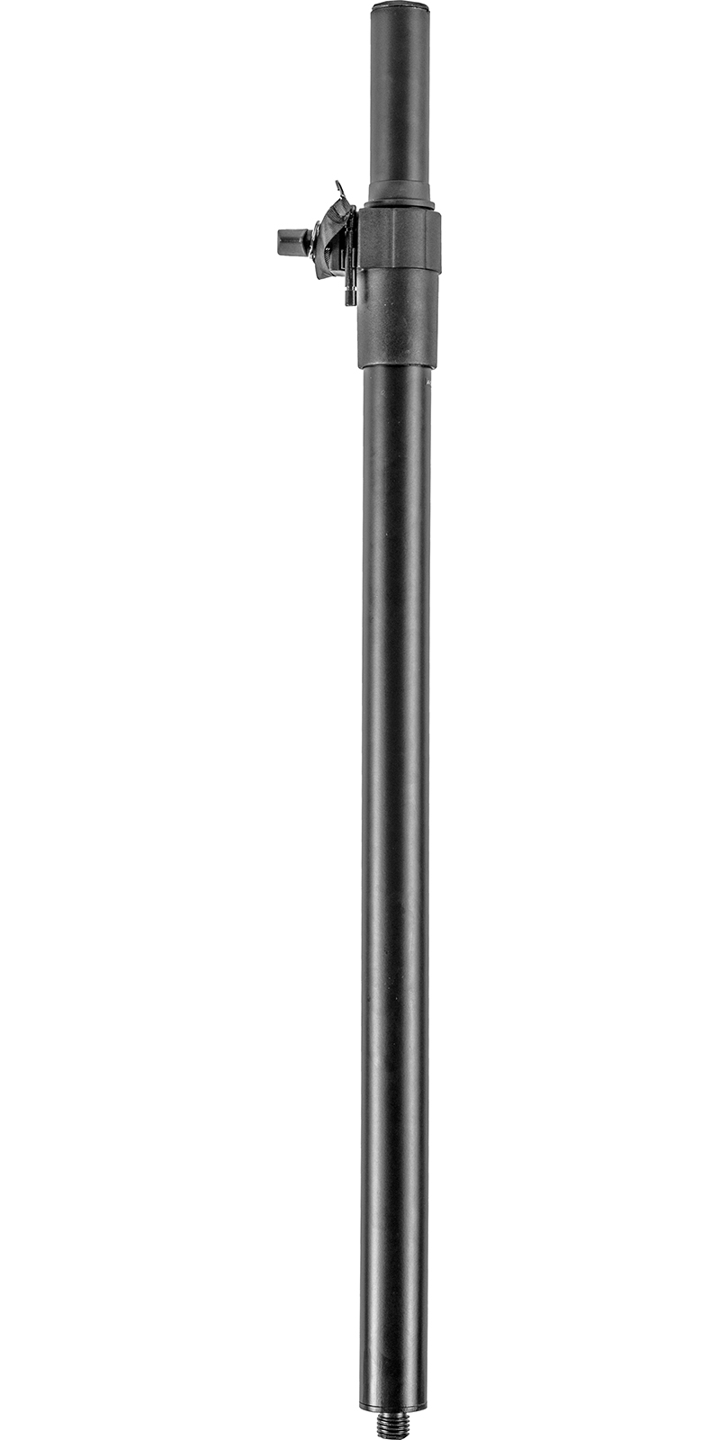 Poste de altavoz ajustable para separación entre altavoz y subwoofer, ajuste de 735 a 1230 mm, terminal superior: Ø 35 mm, terminal inferior: Ø 40 mm con tornillo roscado M20 x 2.5, carga máxima: 50 kg, peso: 2.2 kg.