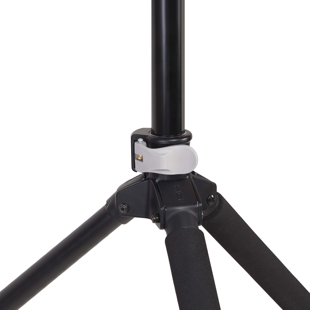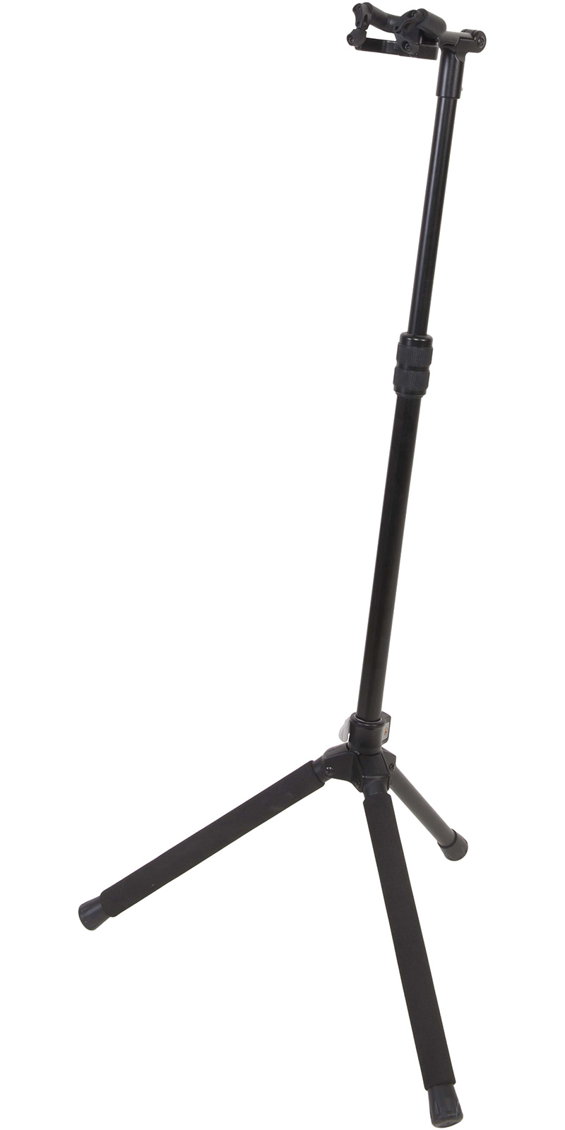 Soporte de piso universal para guitarra, fabricado con acero y aluminio, altura ajustable, embrague de aluminio diecast con cubierta de goma de ”agarre suave”, sistema de cierre AUTO-LOCK para bloqueo automático, todas las partes de contacto cubiertas con goma suave y EVA, totalmente plegable para facilitar el transporte, pero: 1.45 kg, carga máxima: 15 kg.