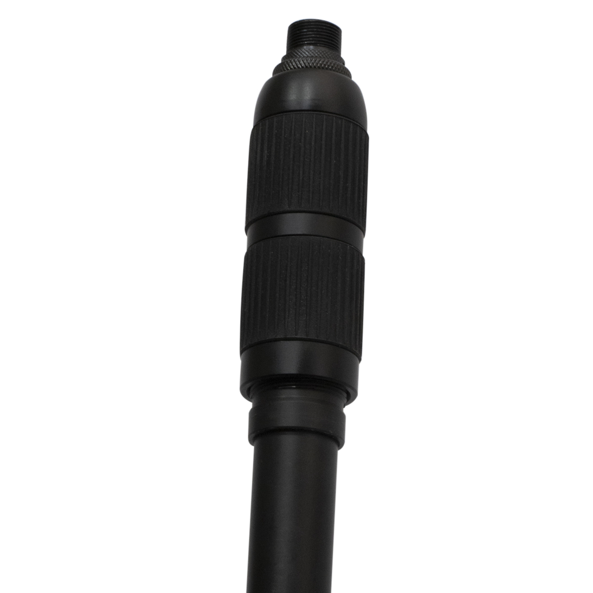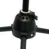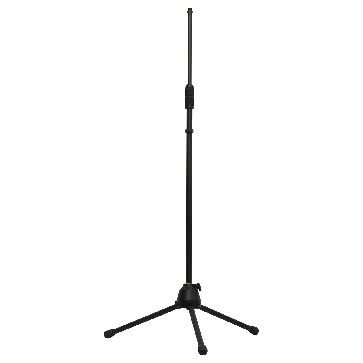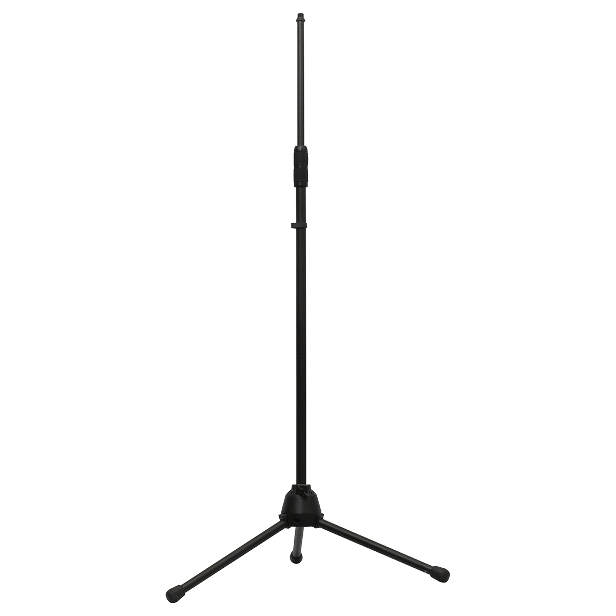 Soporte recto para micrófono, base trípode de aluminio fundido, tubos de acero grueso, ajuste de altura simple y seguro, rosca de 3/8” con adaptador de 5/8” incluido, altura mínima: 880 mm, altura máxima: 1580 mm, peso: 2.30 kg.
