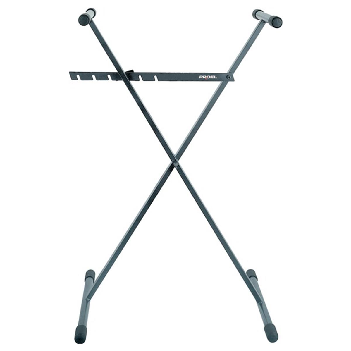 Soporte Proel para teclado. Modelo: KB100. Soporte en cruz. Mecanismo Easy-Lock.Totalmente ajustable. Estable y seguro. Altura: 300 mm. Peso: 2.55 Kg. Diámetrodel tubo: 25 mm. Dimensión del tubo: 25 x 25 x 1.2 mm. Capacidad de carga: 30 Kg. Longitud del brazo: 300 mm.