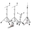 Un soporte de contratiempos HH 2000, un soporte de tarola SS 2000, 2 soportes de platillo con mino boom MBS 2000 V2 y un pedal de bombo SP 2000.