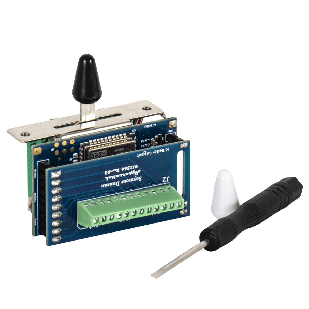 Atrás quedaron los días de leer diagramas de cableado y la experimentación de prueba y error con el soldador. En su lugar, vuelva a cablear su guitarra con el toque de su teléfono. El sistema Seymour Duncan HyperSwitch™ es la fusión de plataformas tradicionales y tecnológicas que permite a los guitarristas de todos los niveles cambiar sin esfuerzo y de inmediato la configuración de cableado de sus pastillas pasivas. HyperSwitch ™ es una cuchilla activa de 5 vías poderosa que es compatible con la mayoría de las pastillas pasivas. Diseñe, almacene y recupere sus configuraciones personalizadas con la aplicación móvil fácil de usar. HyperSwitch™ se empareja con su teléfono inteligente a través de Bluetooth y funciona con una batería de 9v. La aplicación móvil se puede encontrar en la App Store de Apple para dispositivos iOS y en Google Play Store para dispositivos Android.