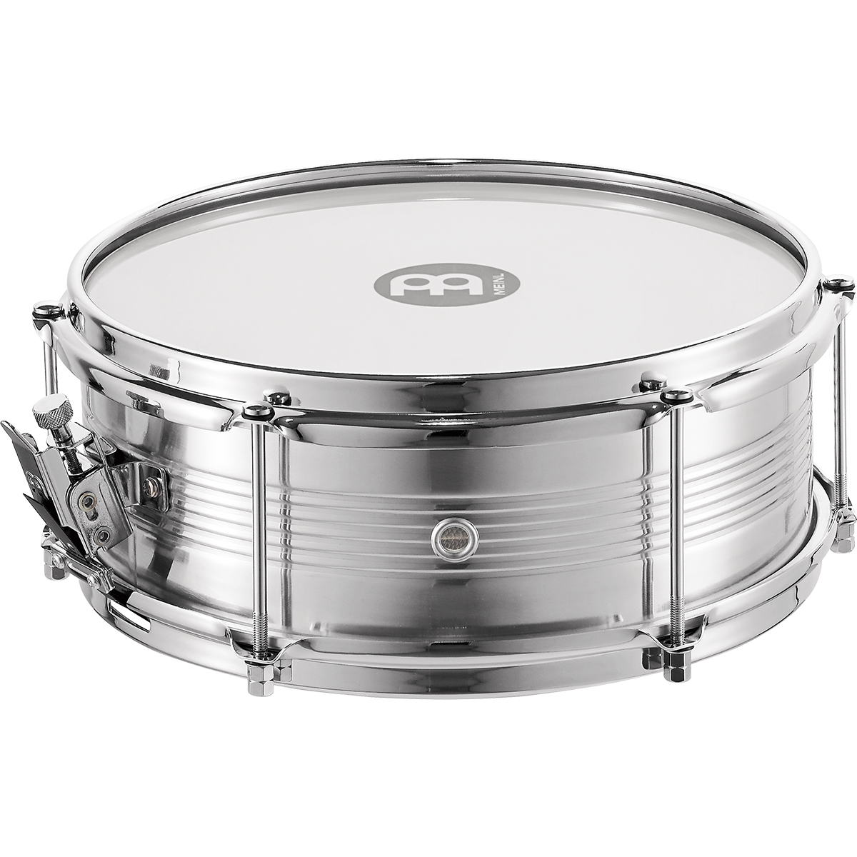 Caixa de 12” pulgadas, tornillos avellanados de cabeza plana, parche sintético reemplazable, logotipo por debajo del parche, alambres de acero, mecanismo throw-off profesional tipo tarola, fabricado con aluminio, altura: 4 1/2”.