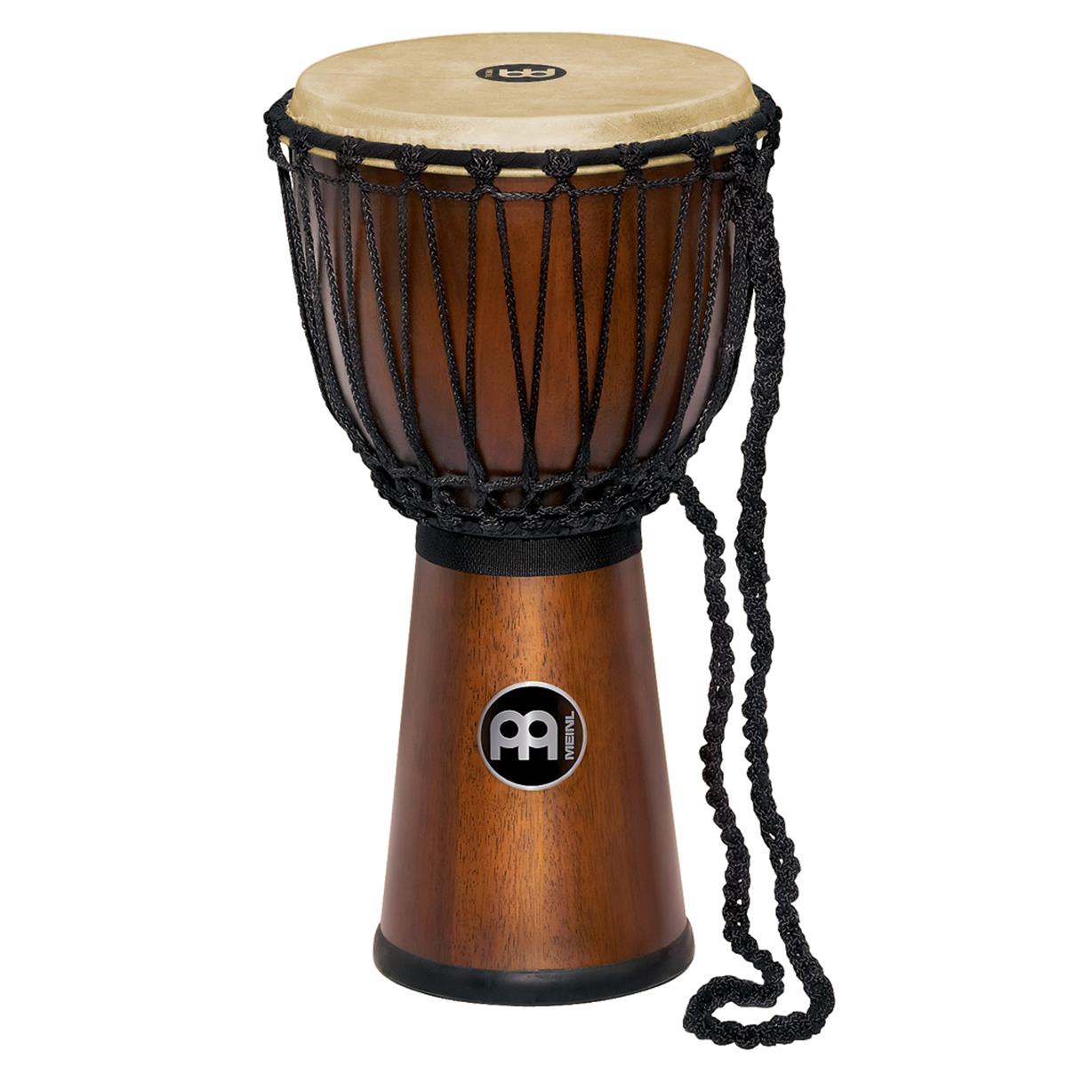 El djembe africano de Meinl está fabricado con una sola pieza de madera de caoba y escarbada a mano para poder mantener el sonido natural de la madera.
