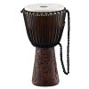 Además de la resonancia tradicional de la caoba, este djembe está fabricado en una sola pieza de madera y escarbado a mano, esto le da la máxima resonancia y calidad sonora.