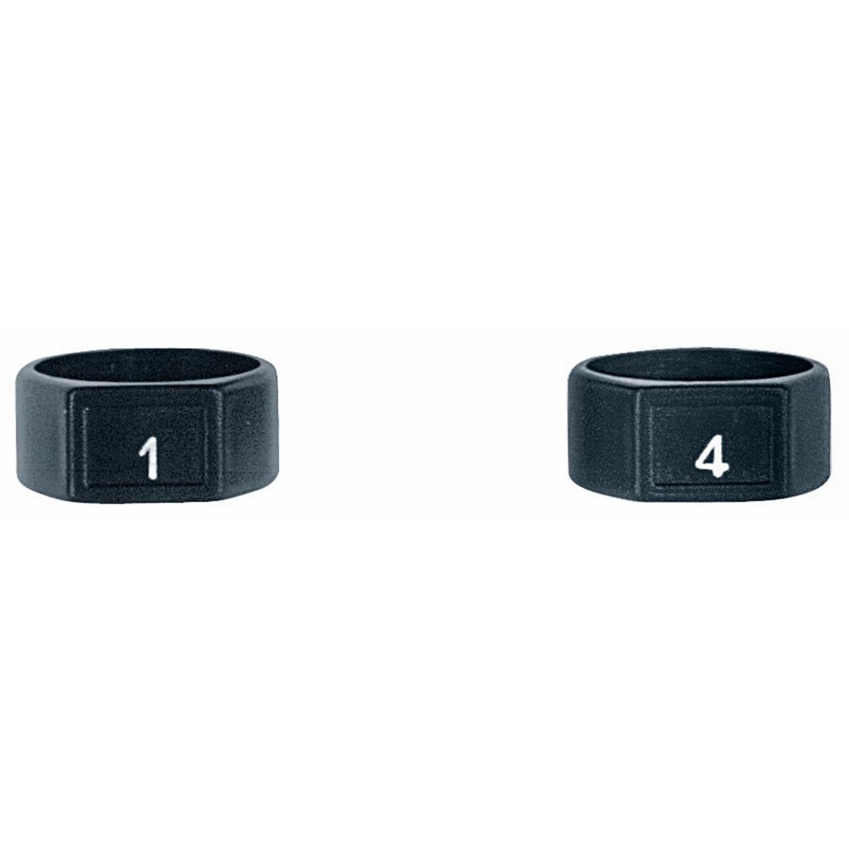 Kit de anillos numerados para insertar en los conectores XLR hembra serie XLRFV y XLRFA. Del 1 al 4.