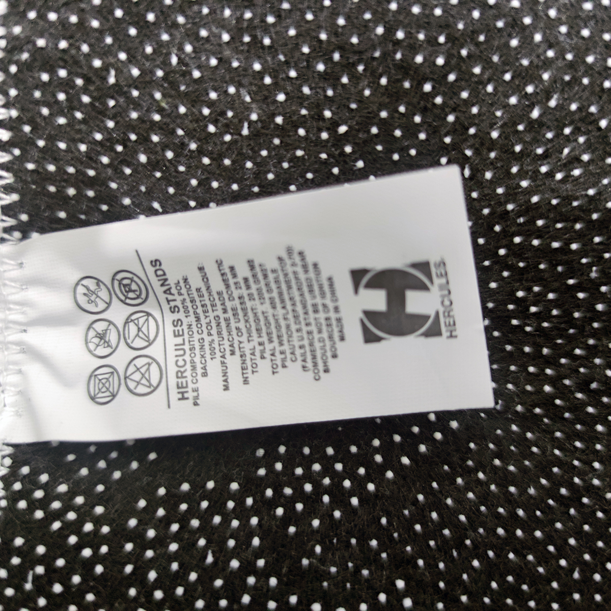 Alfombra para baterista o percusionista, diseño logotipo Hercules, fabricado 100% poliéster, espesor: 25 mm, peso: 1.2 kg.